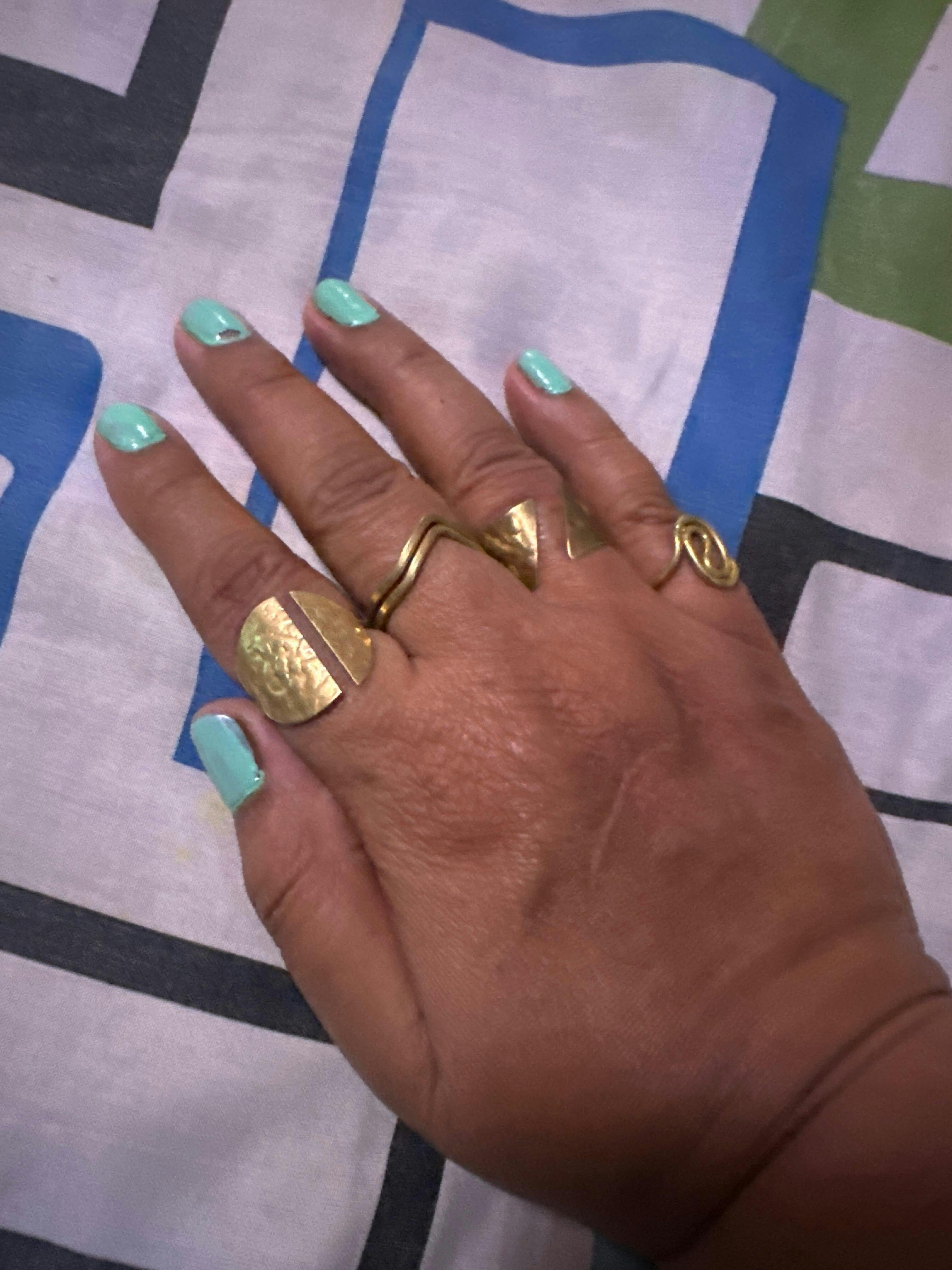 Add a touch of whimsy to your jewelry collection with our Disc Tri Brass Rings Combo 3 Rings. Made with high-quality brass, these rings feature a unique disc and triangle design that is sure to make a statement. Plus, with anti-tarnish Brass, your rings will always maintain their beautiful shine. Get the complete set today!