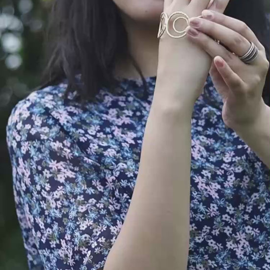 This Loopa Loop bracelet is made of high-quality brass, designed to be adjustable for a perfect fit. Its anti-tarnish coating ensures long-lasting shine. Elevate any outfit with this modern and versatile bracelet.