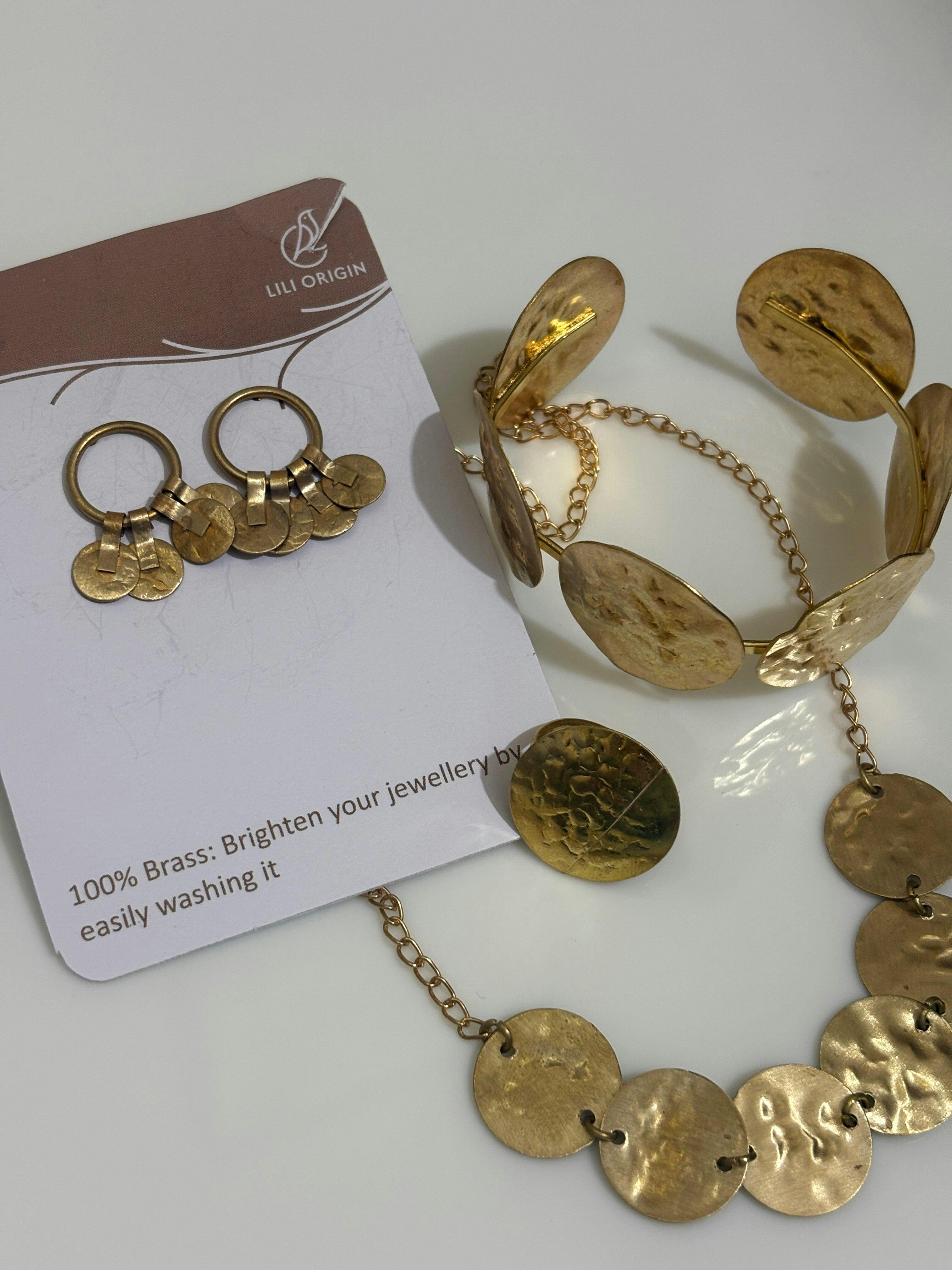 To keep your brass jewellery looking radiant, give it a gentle clean from time to time. Regular cleaning helps maintain its shine and prolongs its life—making it both beautiful and sustainable.