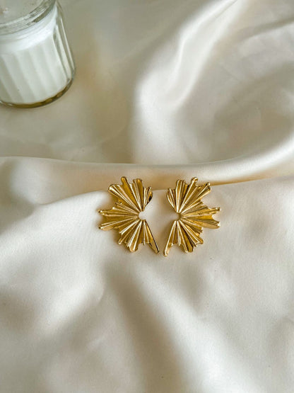 The Demi Thunder Statement Earring is a unique and eye-catching piece of jewelry. Perfect for a special occasion or party, this statement earring is sure to turn heads. Its intricate design and gold-tone make it a standout item for any outfit and make a statement.