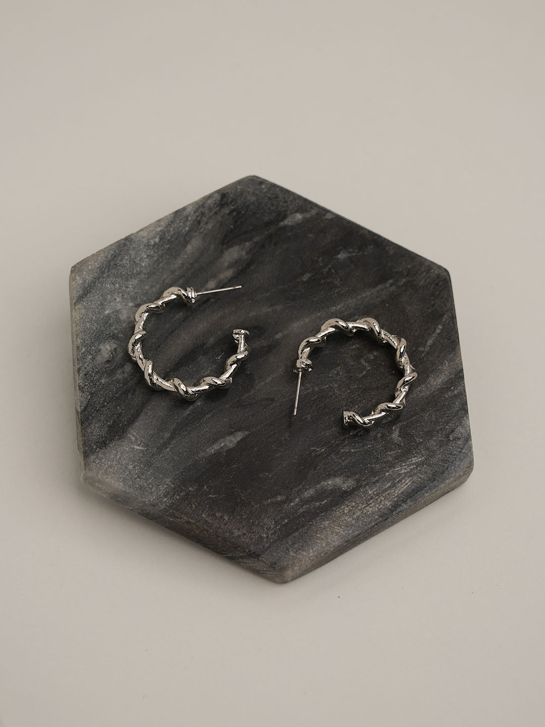 These Twisted Hoop Earrings boast an intricate Silver tone design, making them an ideal choice to add sophistication to any look. They are lightweight and appropriate for any event. Featuring an intricate Silver tone design, these earrings are lightweight and perfect for any occasion. Elevate your style with sophistication and grace.