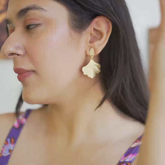 Gingko Leaf Brass Handcrafted Earring (Anti Tarnish)