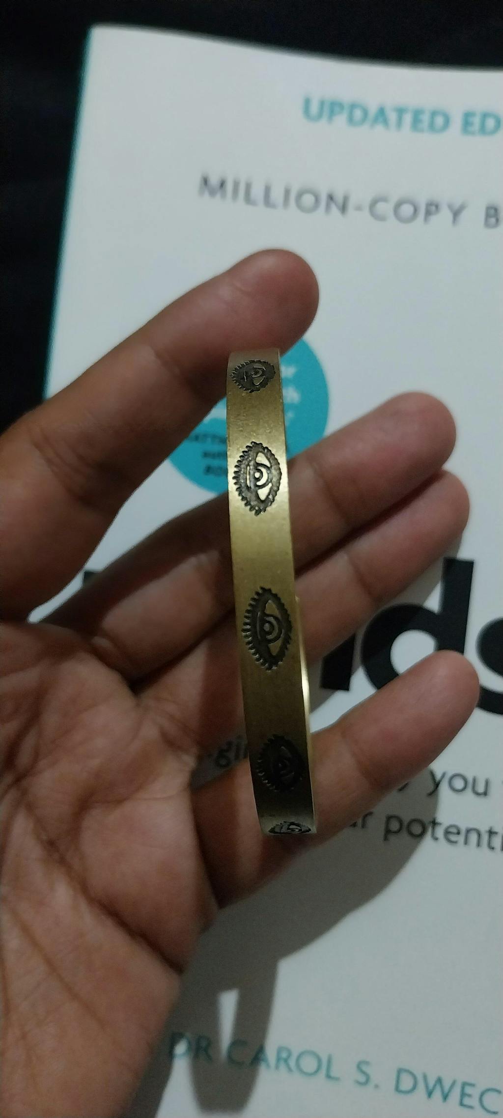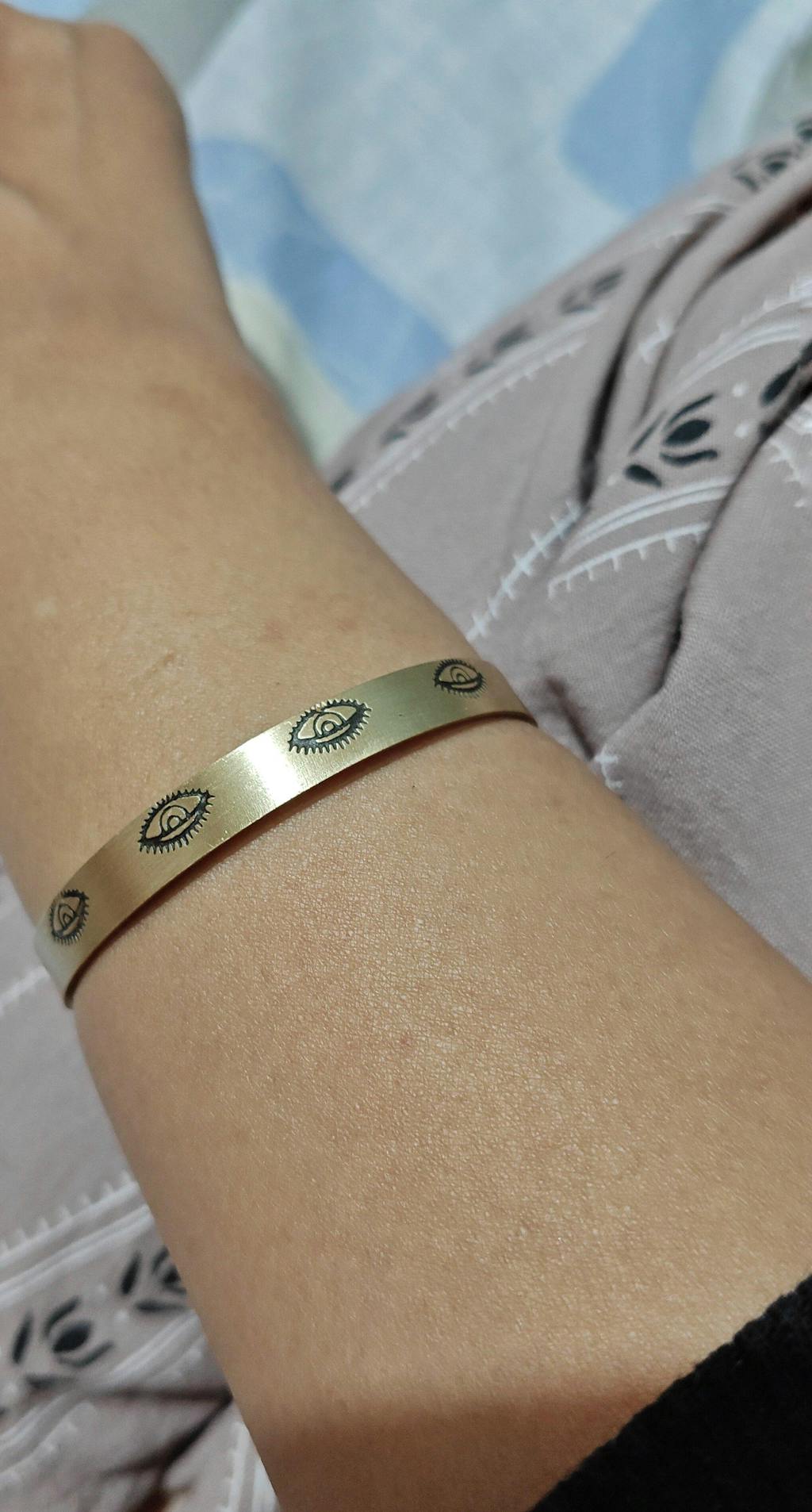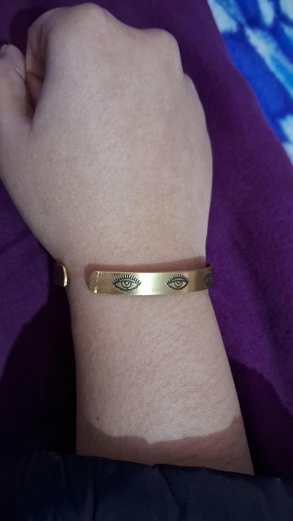 Evil eye Hand Stamped Brass Band Adjustable Bracelet (Anti tarnish)
