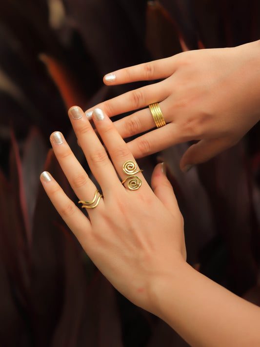 • Twiddle 3 Rings Combo Brass Adjustable Ring (Anti Tarnish) V line Statement Brass Adjustable Ring - Lili-Origin