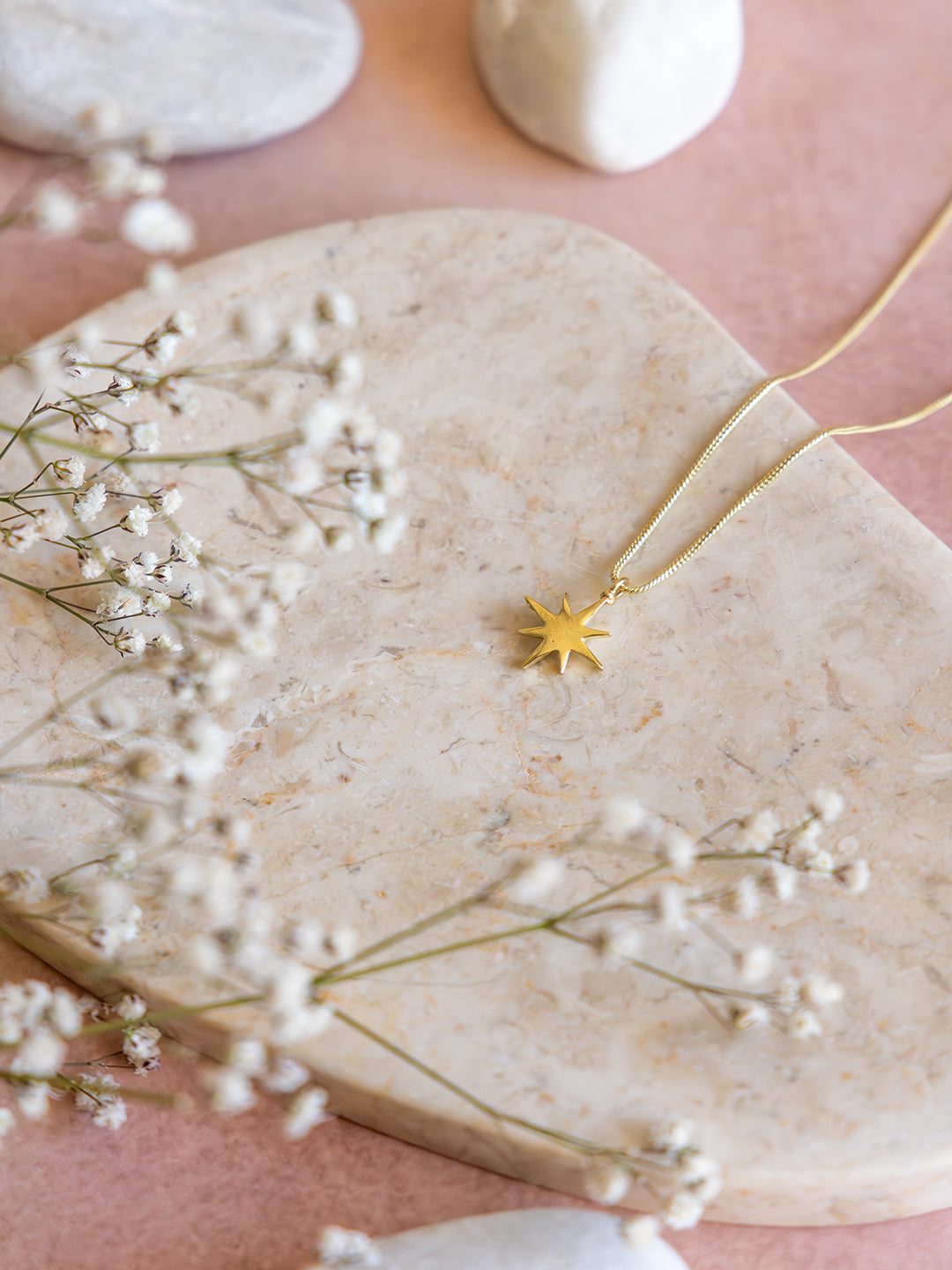 The North Star Brass Necklace captures the essence of direction and calm — a minimal star pendant that radiates subtle shine and everyday elegance. Perfect for layering or wearing solo as your signature piece.