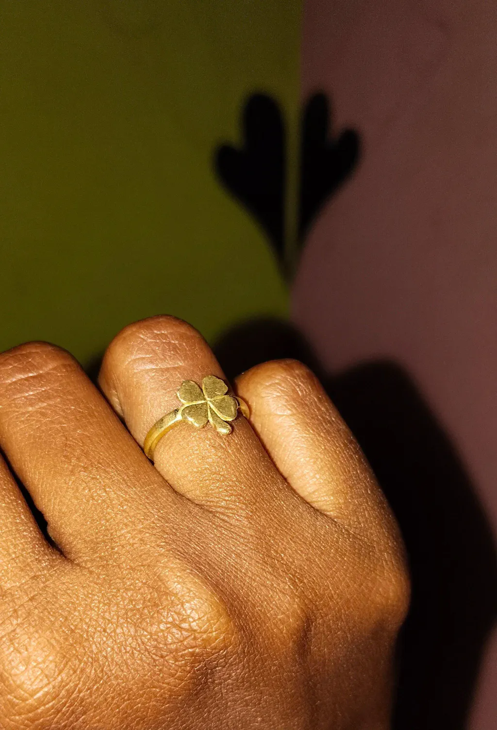 The Lucky Clover Brass Ring brings good energy and effortless style together. With its dainty four-leaf design, this ring adds a meaningful touch to your everyday look — a reminder that luck is always by your side.