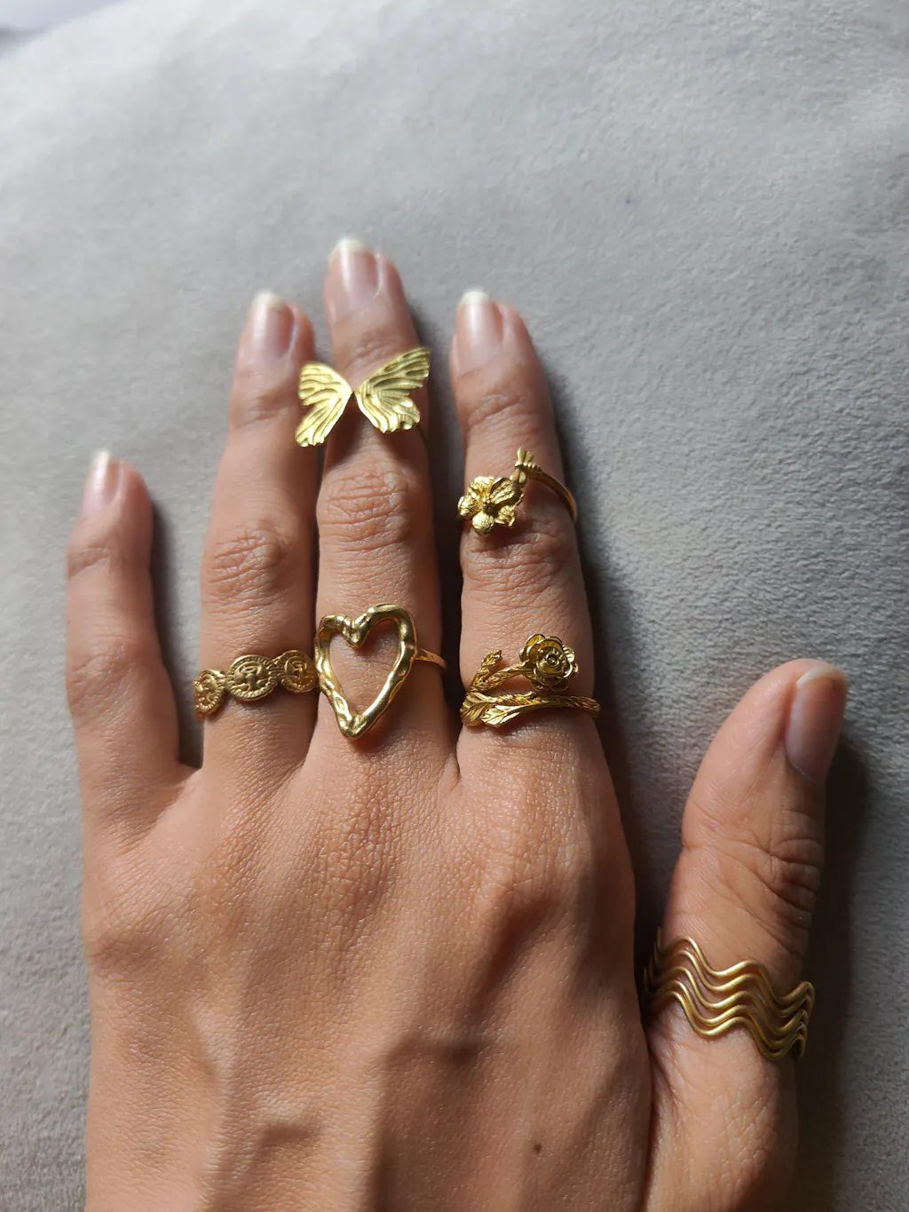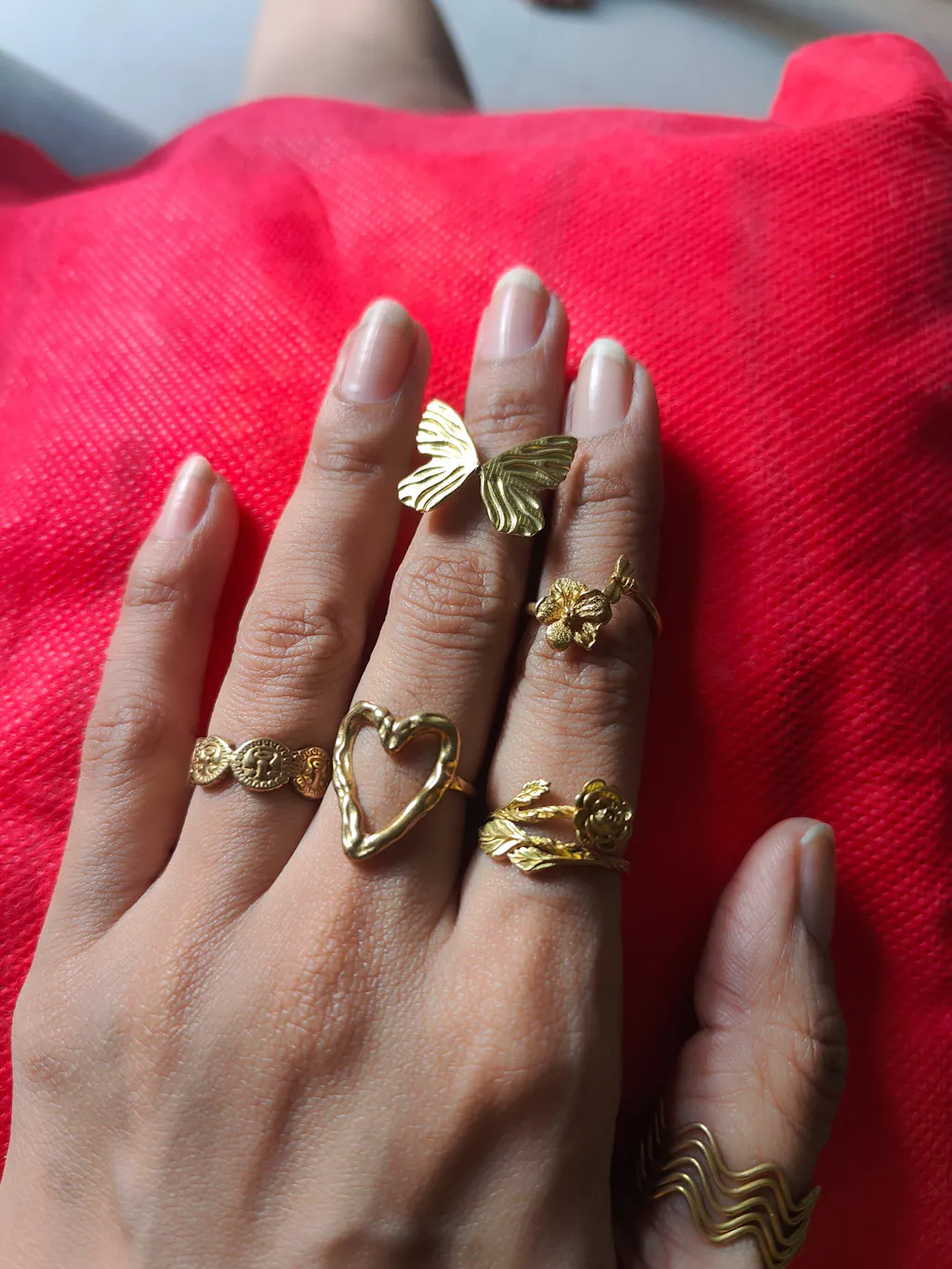 Rose and Butterfly Ring Combo Brass Adjustable Ring (Anti Tarnish)