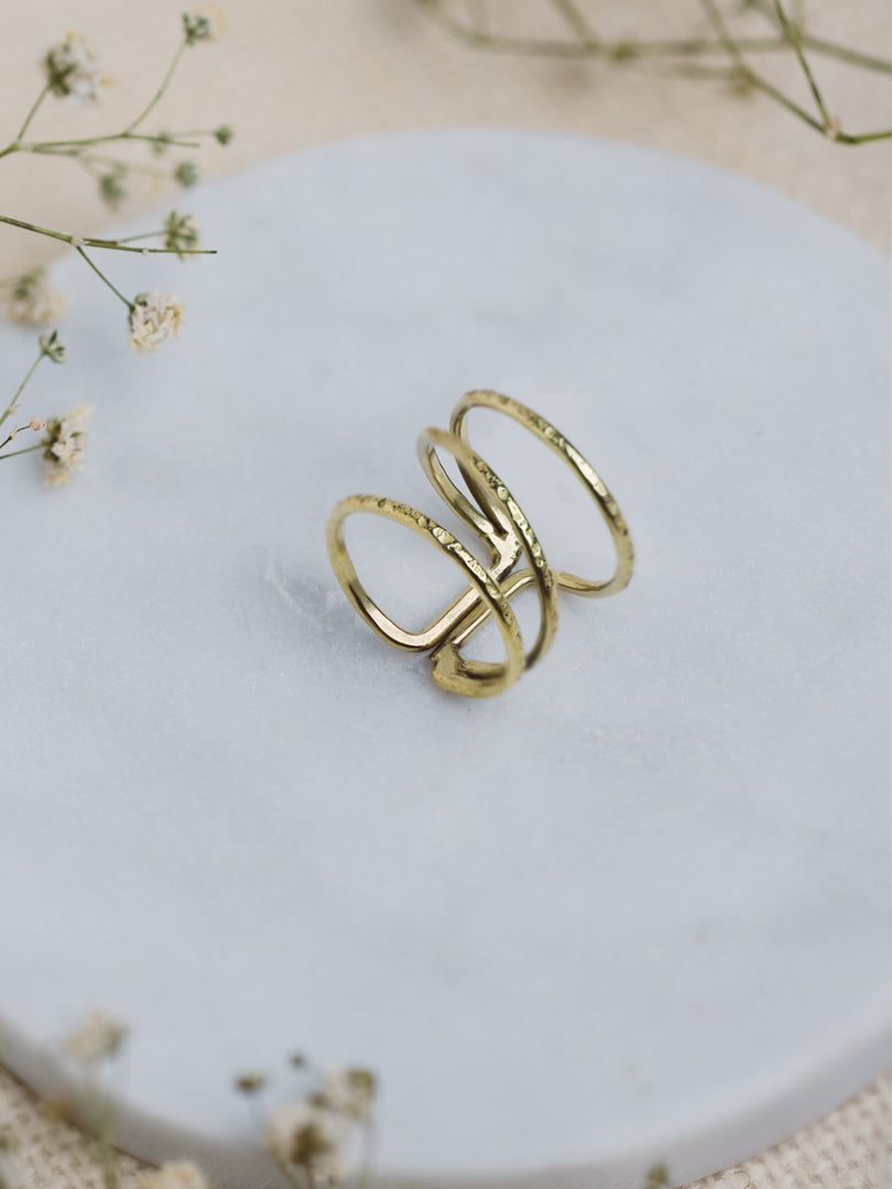 - Hammered Trio Brass Adjustable Ring (Anti Tarnish)