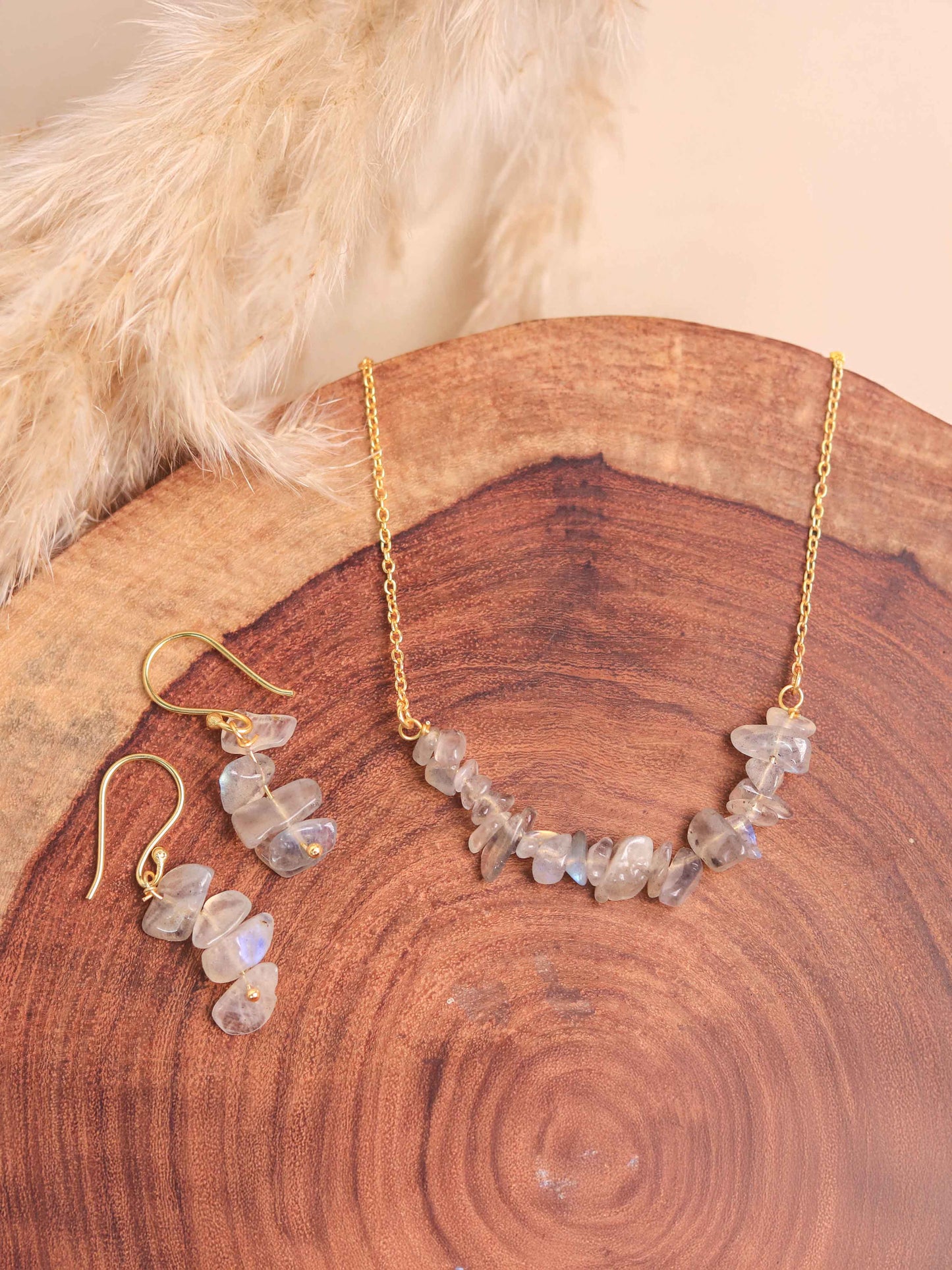 Labradorite Crystal Necklace and Earring Set (Semi Precious Stone)