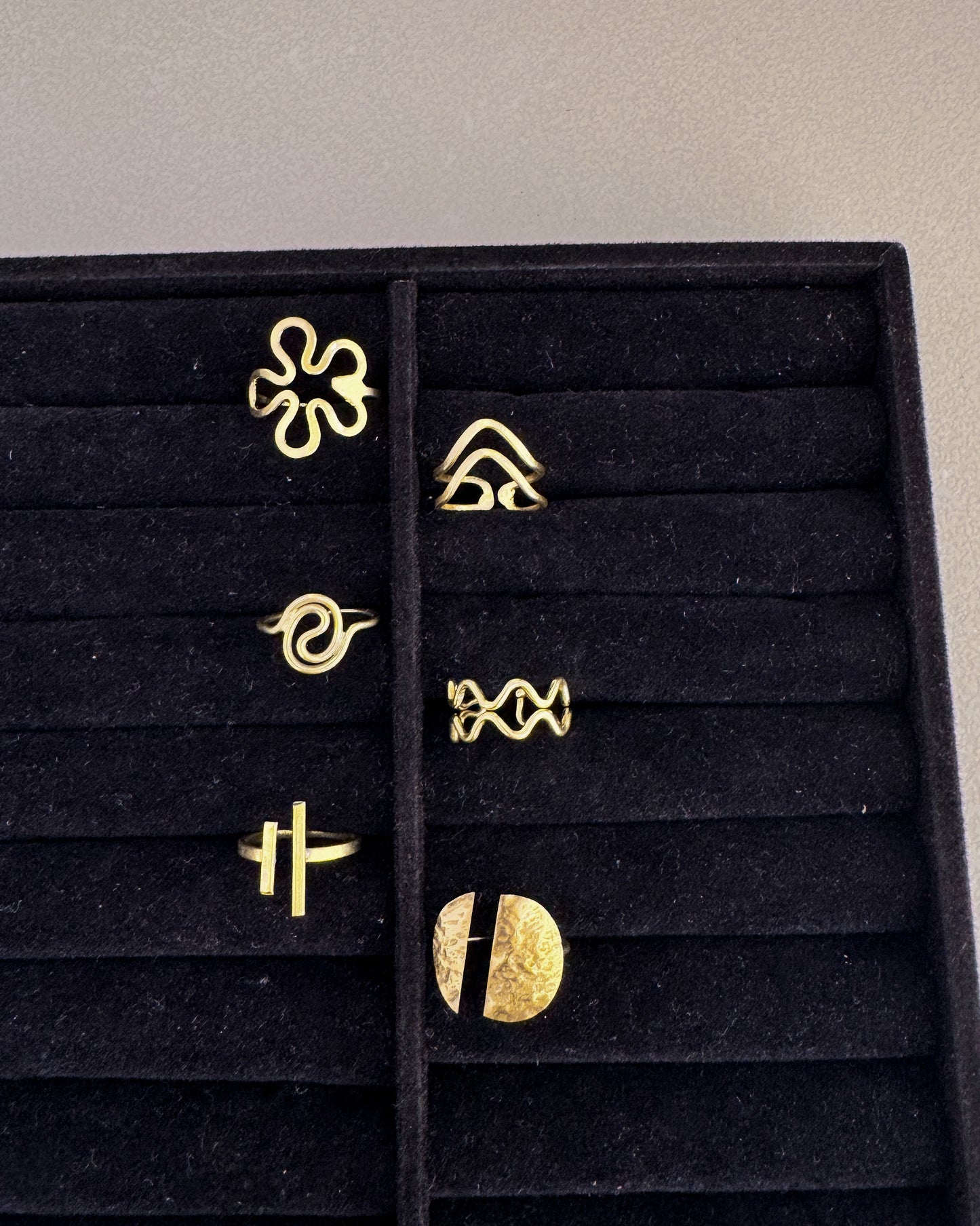 - Double Wave Brass Adjustable Ring (Anti Tarnish)