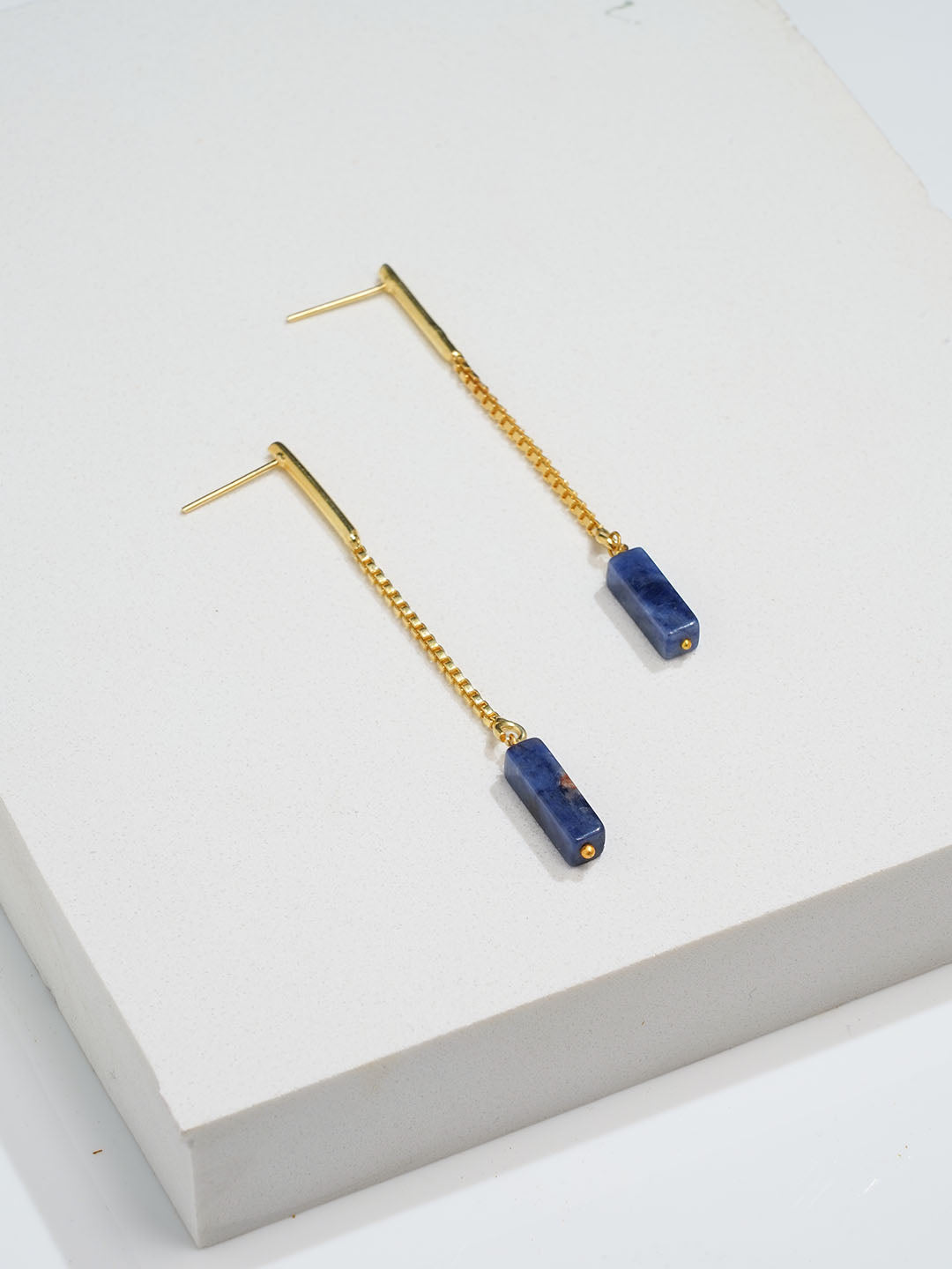 Sodalite Dangling Earring - Gemstone 18k Gold Plated