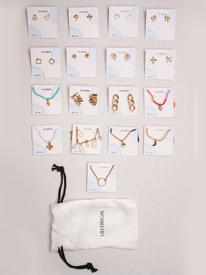 Introducing our Beachy Jewel Mix Hamper, a delightful collection that captures the essence of sun-soaked shores and tranquil waves. This exclusive hamper is curated for those who cherish the beauty of the beach and the allure of handmade craftsmanship. Paired with a charming handmade pouch, this collection is a perfect blend of style and seaside charm.