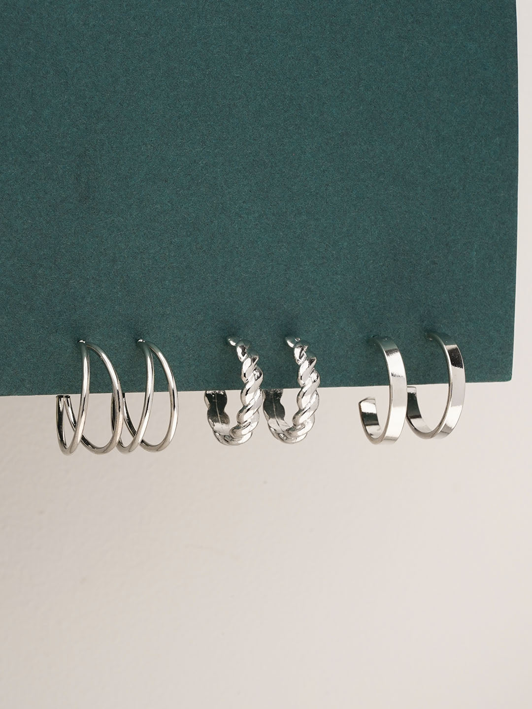 This set contains 3 pairs of minimalist silver hoop earrings. Crafted from silver tone, these earrings are the perfect finishing touch for any outfit. Lightweight and versatile, they make a great staple for any jewelry collection.