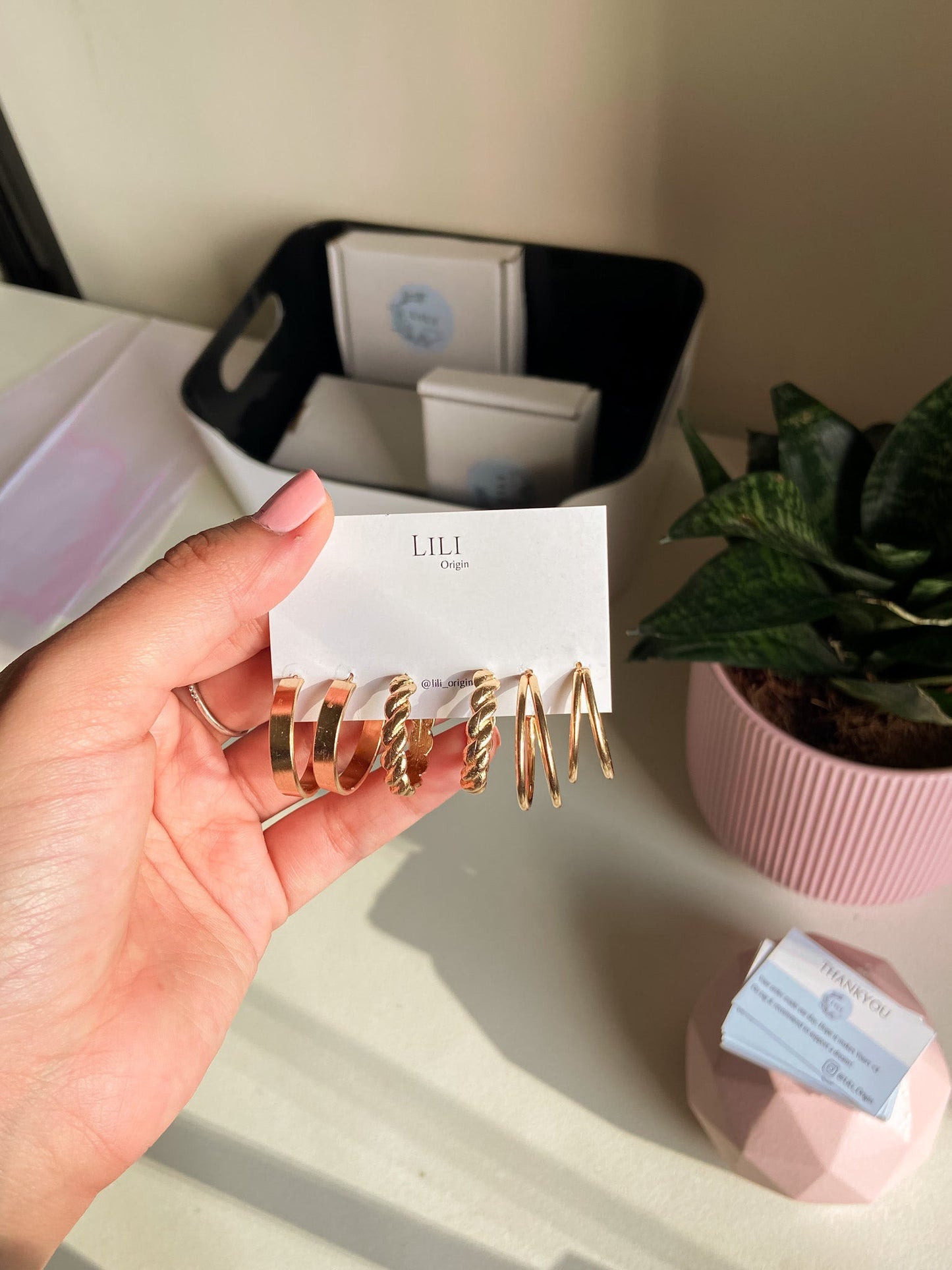 3 Hoop Earring Combo. These combo gold earrings come along with stoppers.