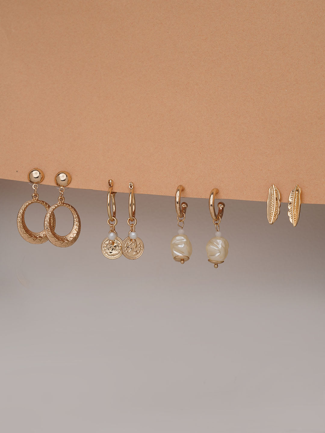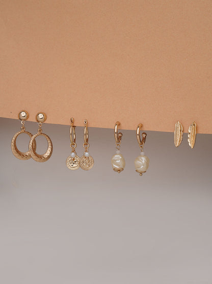 Make a statement with these 4 pairs of Dangler earrings. The selection features unique shapes and sizes, so you can change up your look on different occasions. No matter which pair you choose, your outfit will be complete. Gold Tone Earring with pearl detailing.