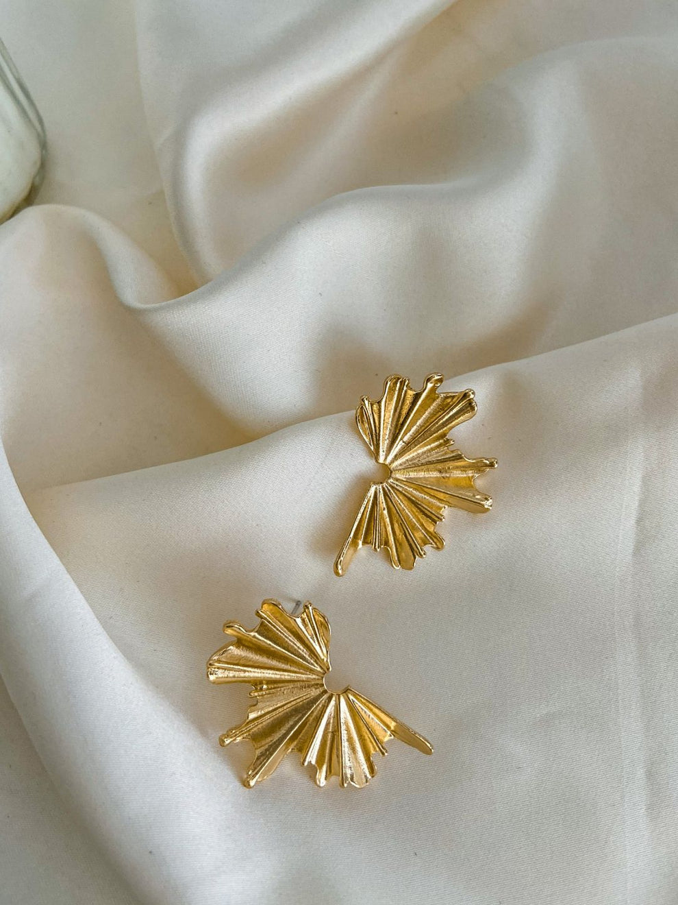 Flower-shaped statement earrings with gold tone is sure to add a spark to any outfit.