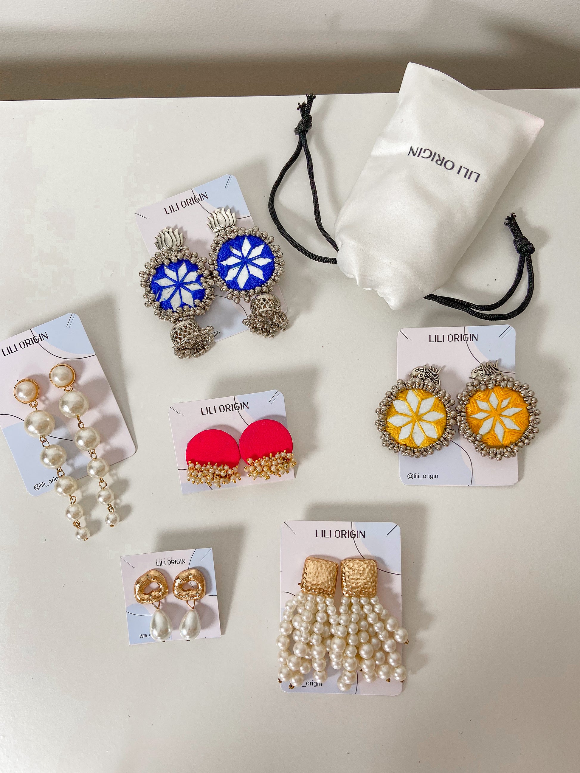 This 6 Festive Earrings + Pouch Diwali Hamper is the perfect choice for celebrating this holiday season. The set features 6 pairs of beautiful earrings in various designs, giving you a gorgeous look suitable for any occasion. The pouch is ideal for storing and protecting the earrings. Get this festive set and make your Diwali special!