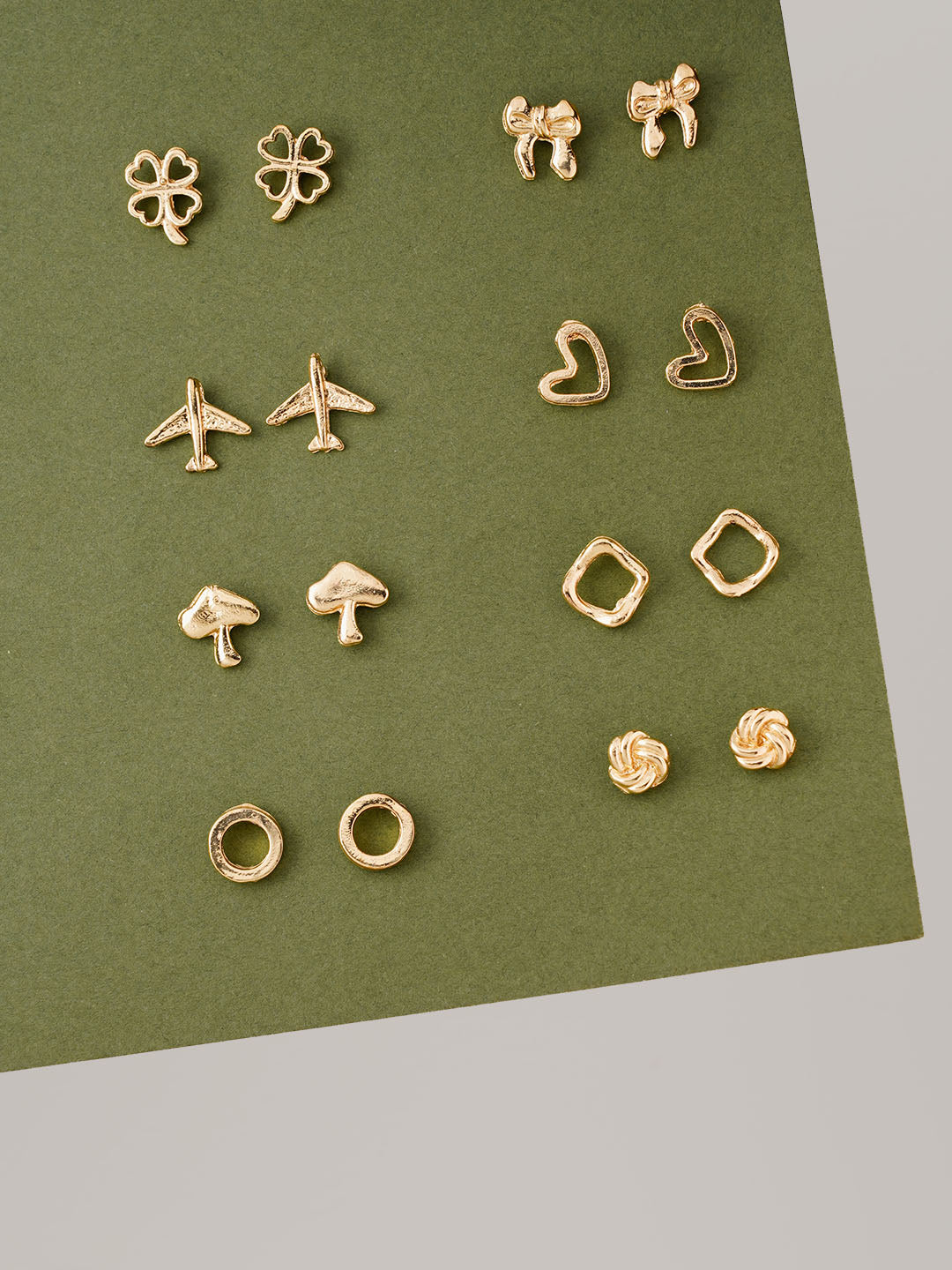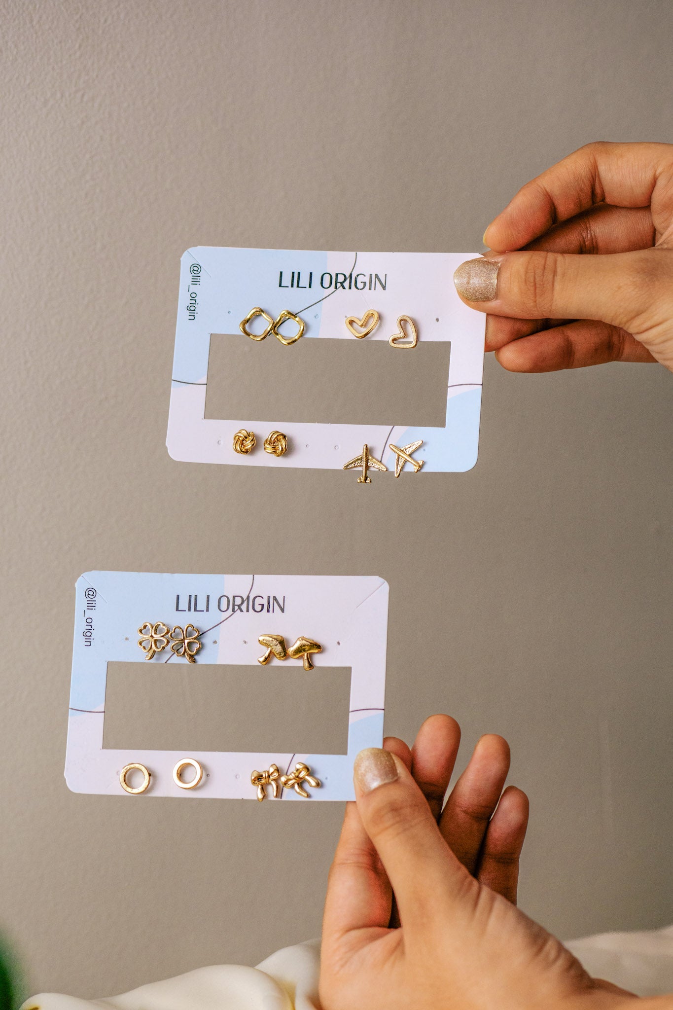 This 8 Pair Lili Stud Earrings Set is perfect for daily wear. It includes 8 pairs of small earrings with a gold tone and hypoallergenic imitation alloy. Dainty and fashion-forward, these stud earrings are a must-have for any jewelry collection.