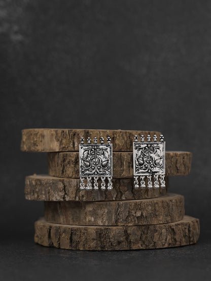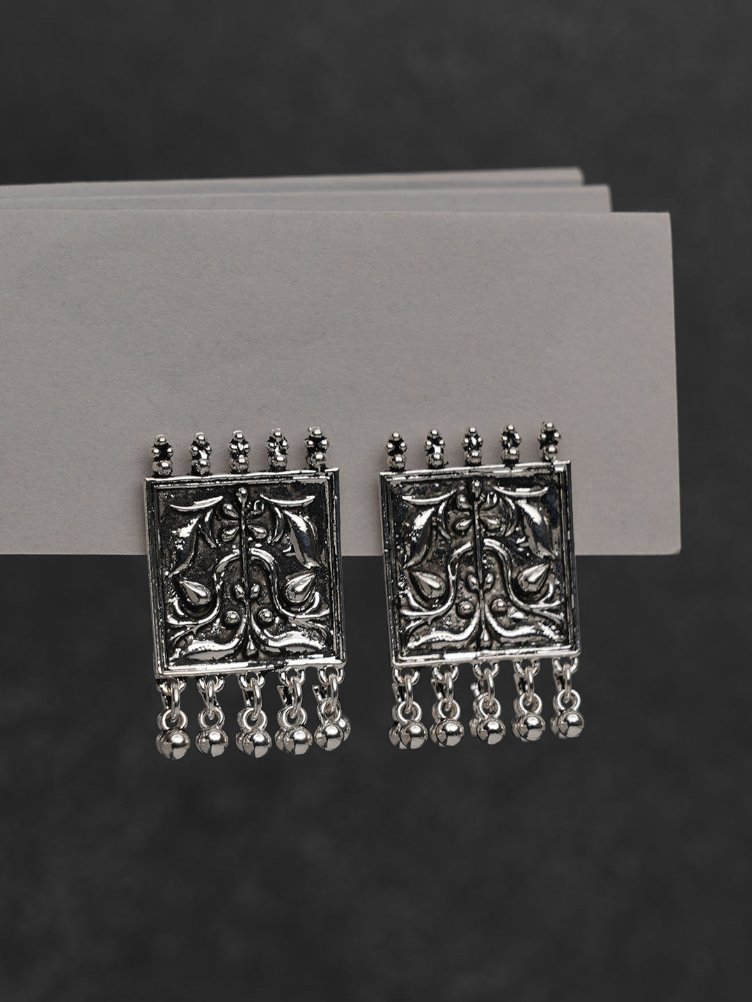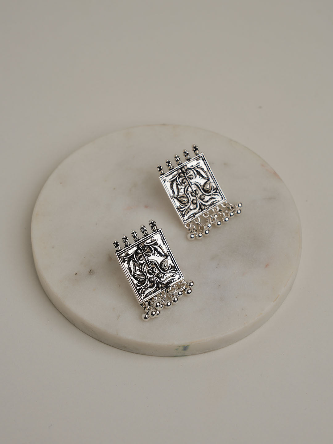 Crafted with exquisite detail, the Antique Rectangle Oxidised Jhumki earrings combine traditional design with modern appeal. The oxidised finish adds a touch of vintage charm, making them a versatile accessory to elevate any outfit. These earrings are perfect for those who appreciate timeless elegance and craftsmanship.