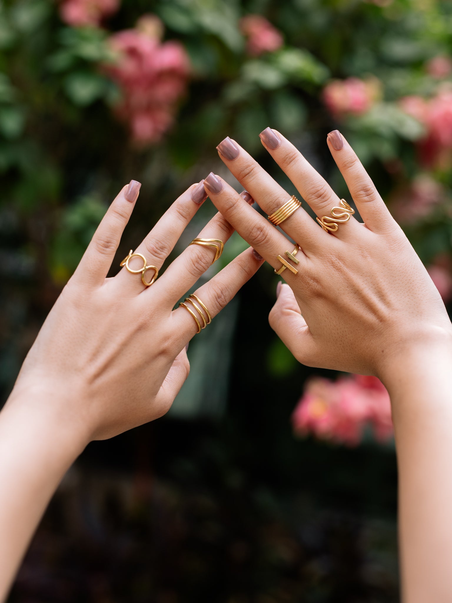 Bloom 6 Brass Rings Combo Adjustable Ring (Anti Tarnish)