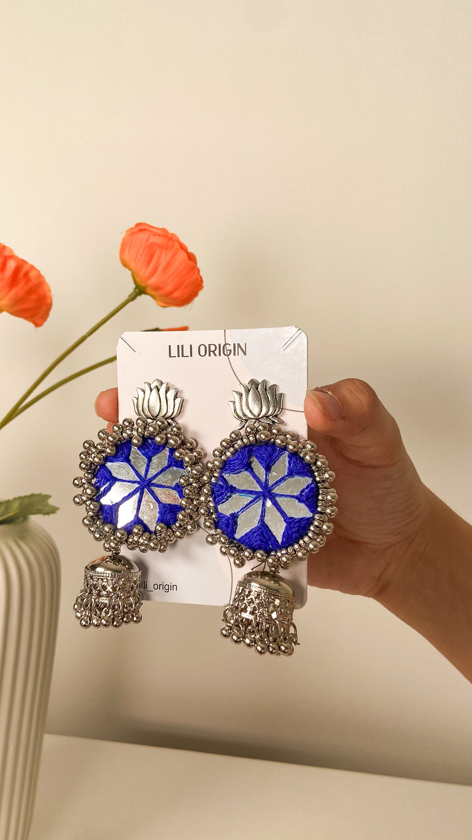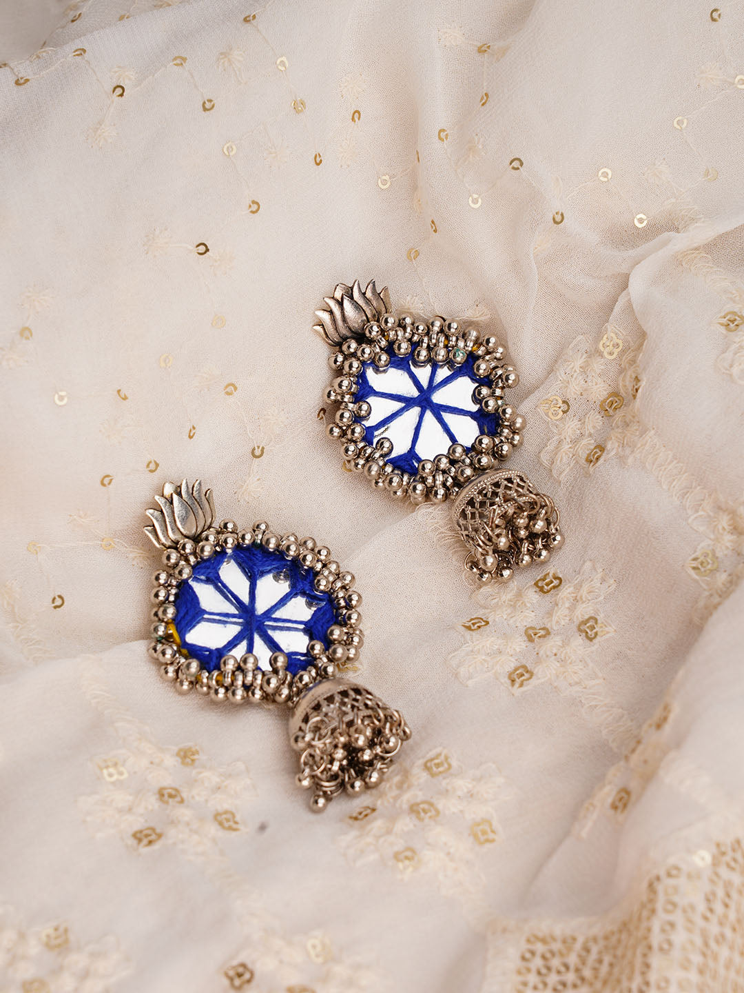 This beautiful Blue handmade Fabric Earring is crafted with Mirrors and oxidized silver. It features a unique design and has been carefully handmade with fabric for maximum comfort and durability. Perfect for a special occasion, this jewelry is sure to make a statement.