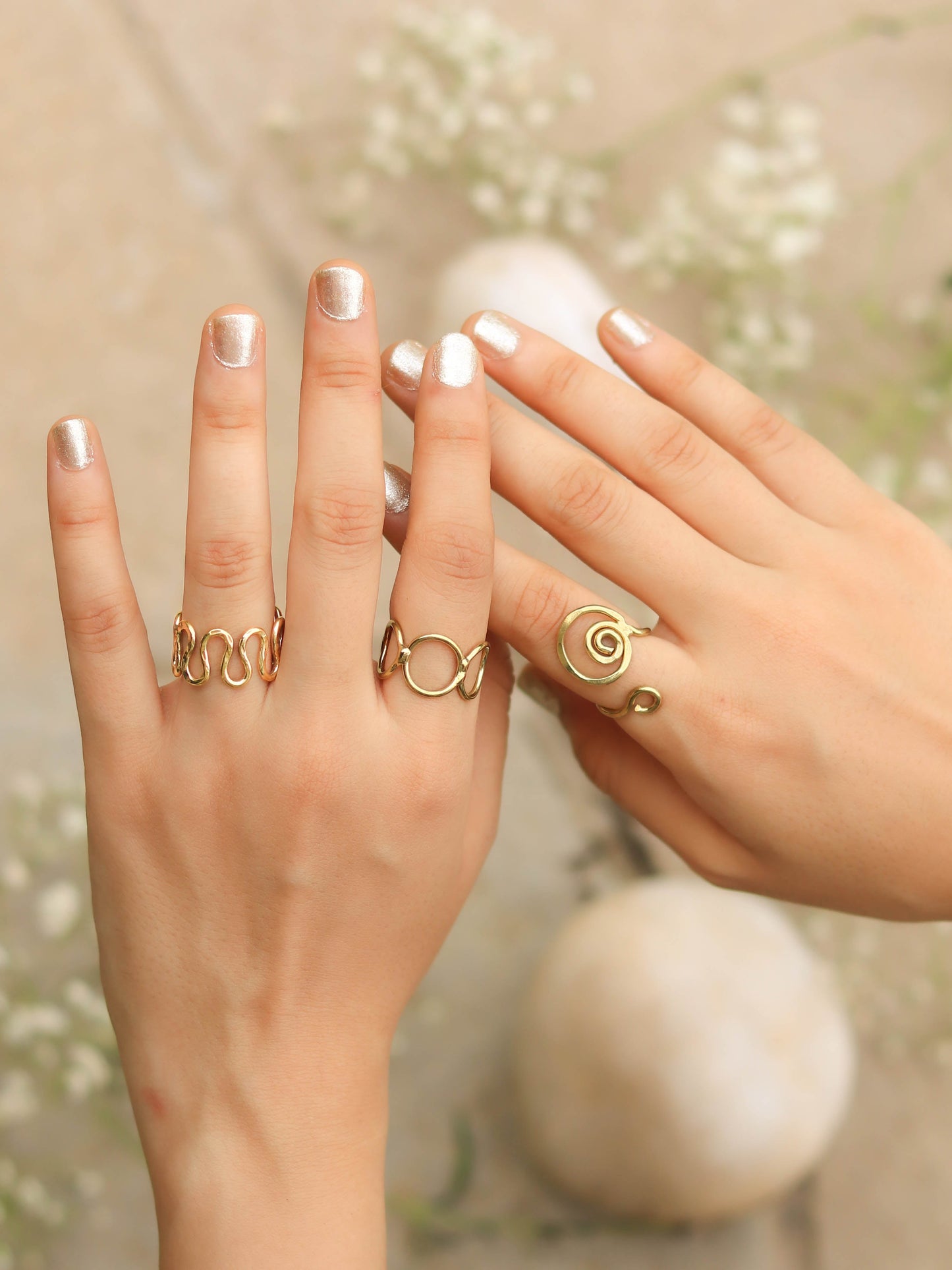 Elevate your everyday style with this versatile combo of 3 handcrafted brass rings. Each piece is uniquely designed to blend minimal elegance with bold charm — perfect for stacking or wearing solo. Made with skin-safe brass, these rings are lightweight, adjustable, and handcrafted by skilled artisans in India. Whether you're dressing up or down, this brass ring set adds a timeless touch to any look.