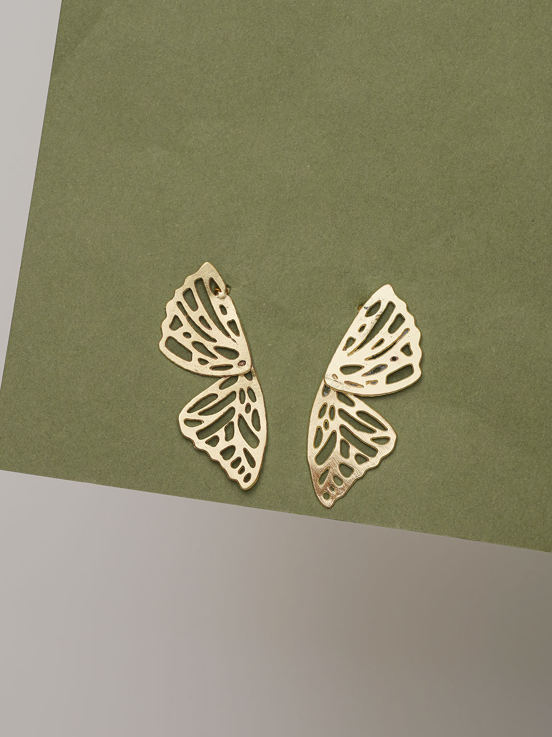 These brass butterfly earrings are a perfect blend of elegance and artistry. The intricate cutwork design feels light and airy, adding a graceful touch to any look. They bring a subtle statement — feminine, unique, and effortlessly beautiful.