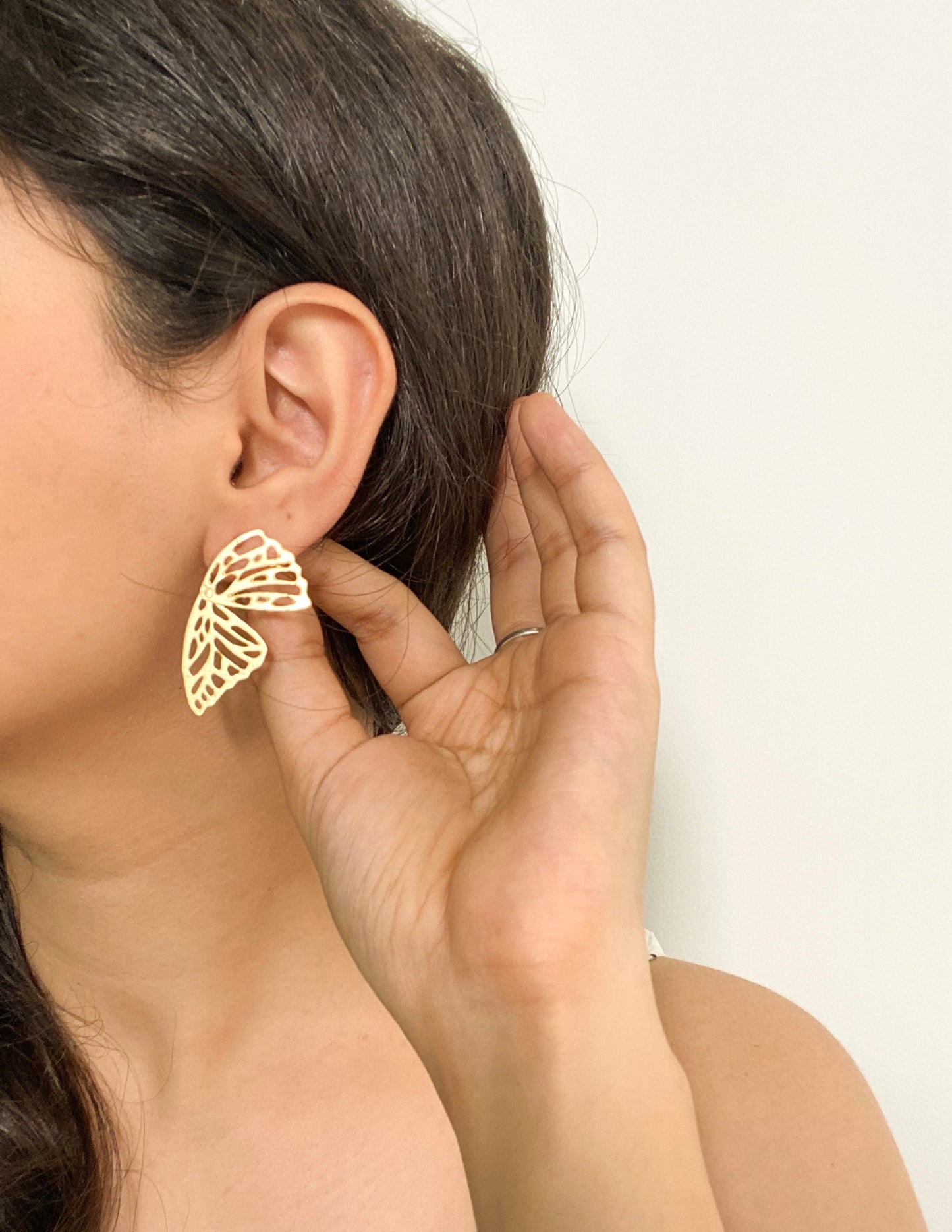 The Butterfly Earring is an elegant and timeless piece of jewelry. The intricate detailing makes this earring an eye-catching accessory, perfect for any occasion. Enjoy the classic design of this earring, while showing your unique sense of style. Handcrafted In India. Discover the artful craftsmanship of this handcrafted earring, carefully designed to add elegance to any look. Delicately made in India, this stunning earring showcases intricate detailing that will surely make a statement. A timeless piece that will enhance your individual style for any event.