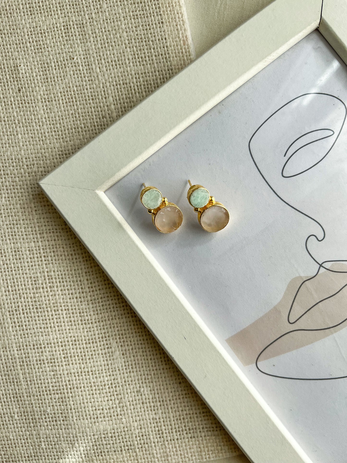 This Dual Stone Crystal Earring is a luxurious and sophisticated piece of jewelry. Crafted with two high-quality stones - Green Amazonite & Rose Quartz. This earring adds an elegant touch to your outfit. With a timeless design, this unique piece of jewelry is sure to turn heads.