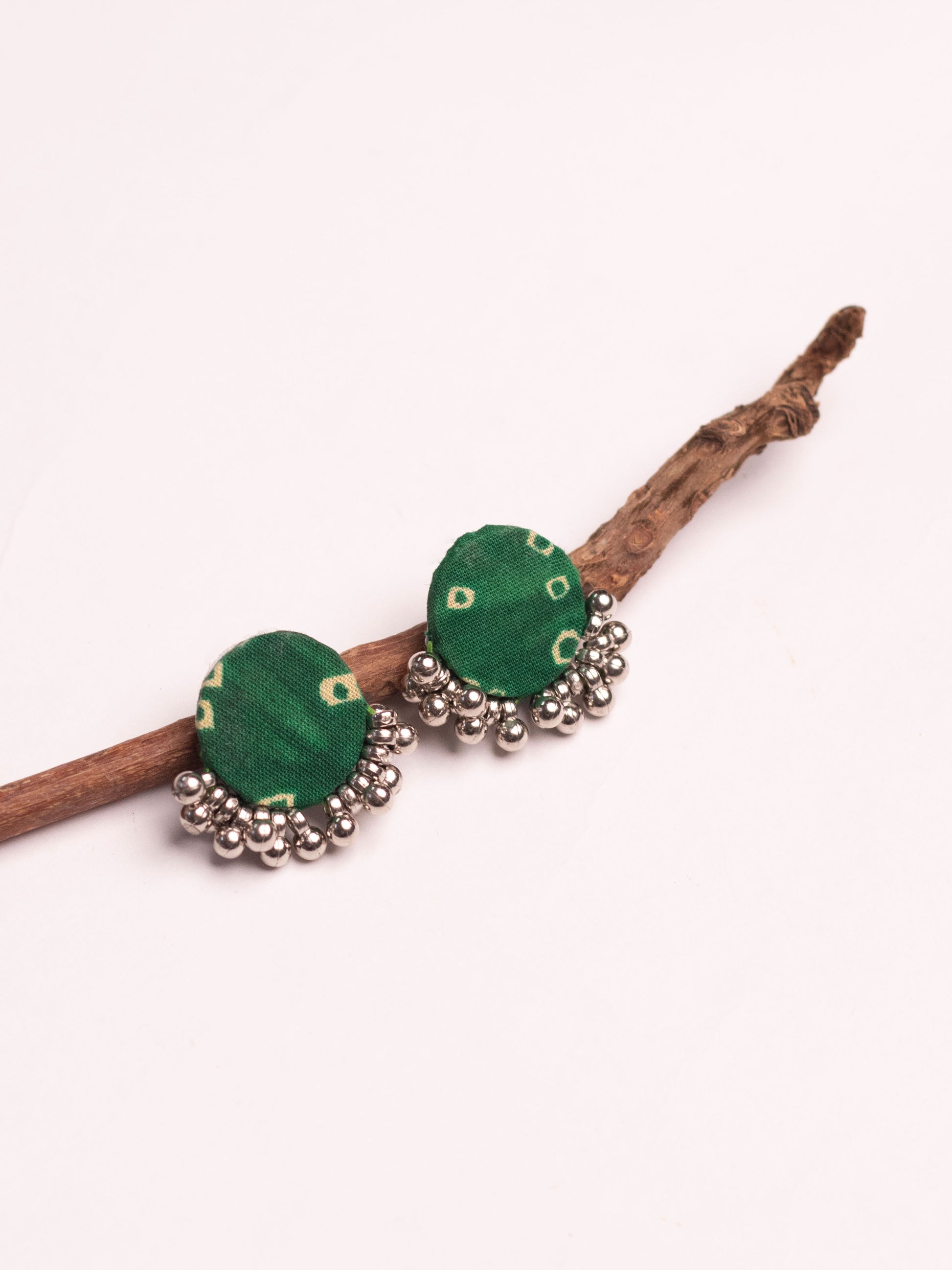 Green Bandhani Fabric Earring