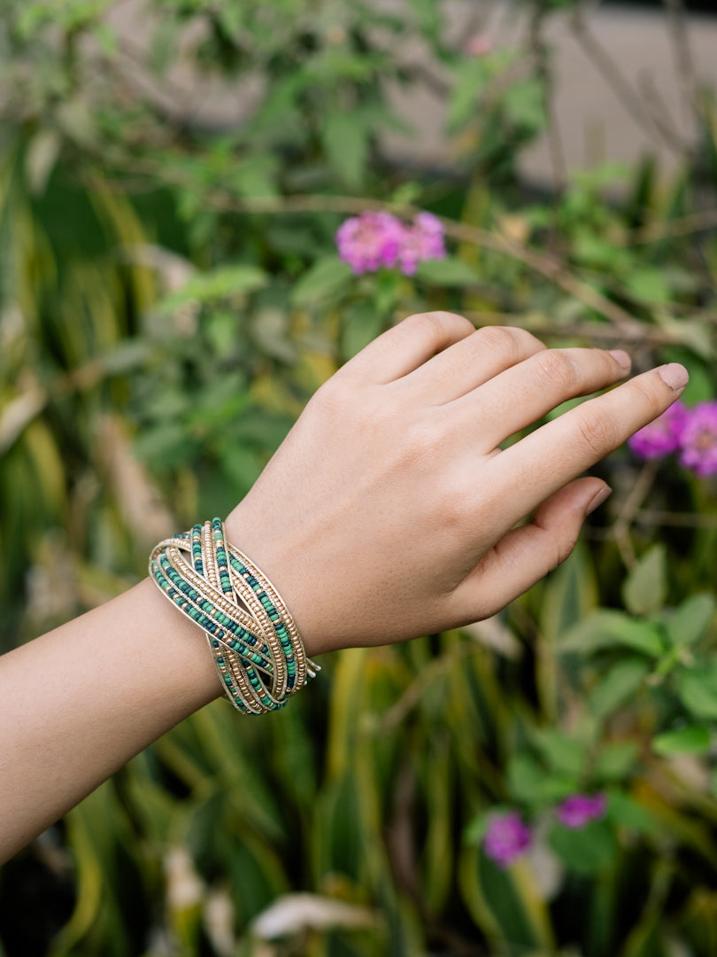 Green Entwine Beaded Adjustable Bracelet