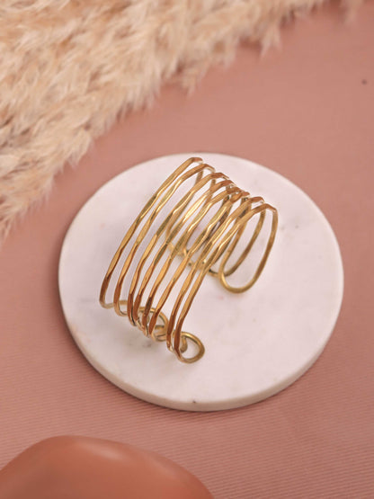 Hallow Out Adjustable Brass Bangle Bracelet (Anti Tarnish)