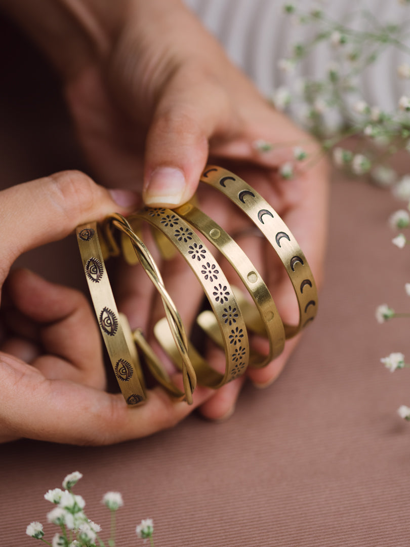To keep your brass jewellery looking radiant, give it a gentle clean from time to time. Regular cleaning helps maintain its shine and prolongs its life—making it both beautiful and sustainable.