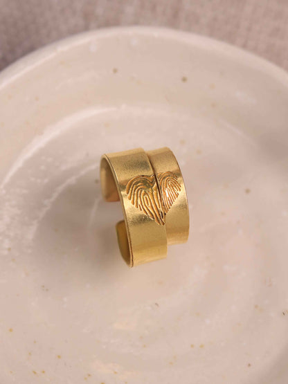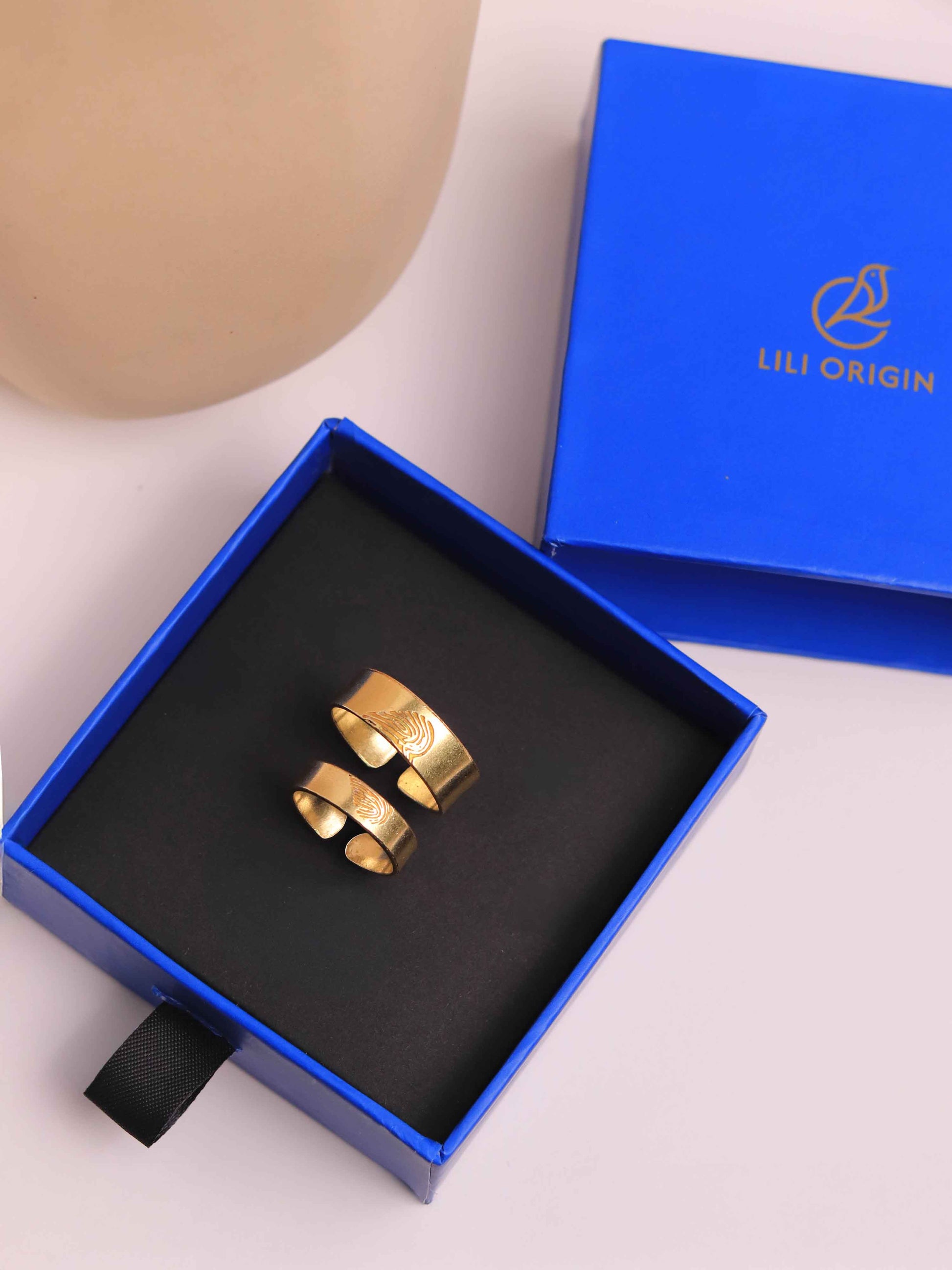 Heart Finger Print Couple Brass Rings with Box (Anti Tarnish)