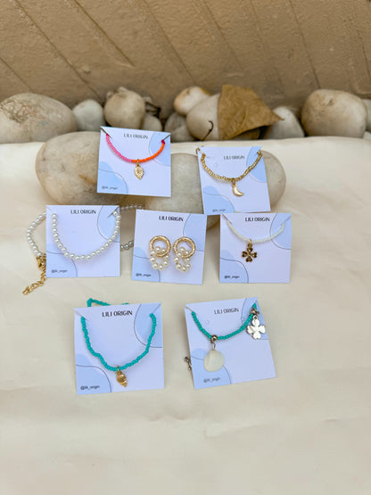 Care - Keep away from water, perfumes, spray, and other chemicals. As well as harsh Sunlight. Store in an air-tight container or zip-lock bag when not in use to prevent discoloration. Clean your jewelry with dry soft fabric after every use.