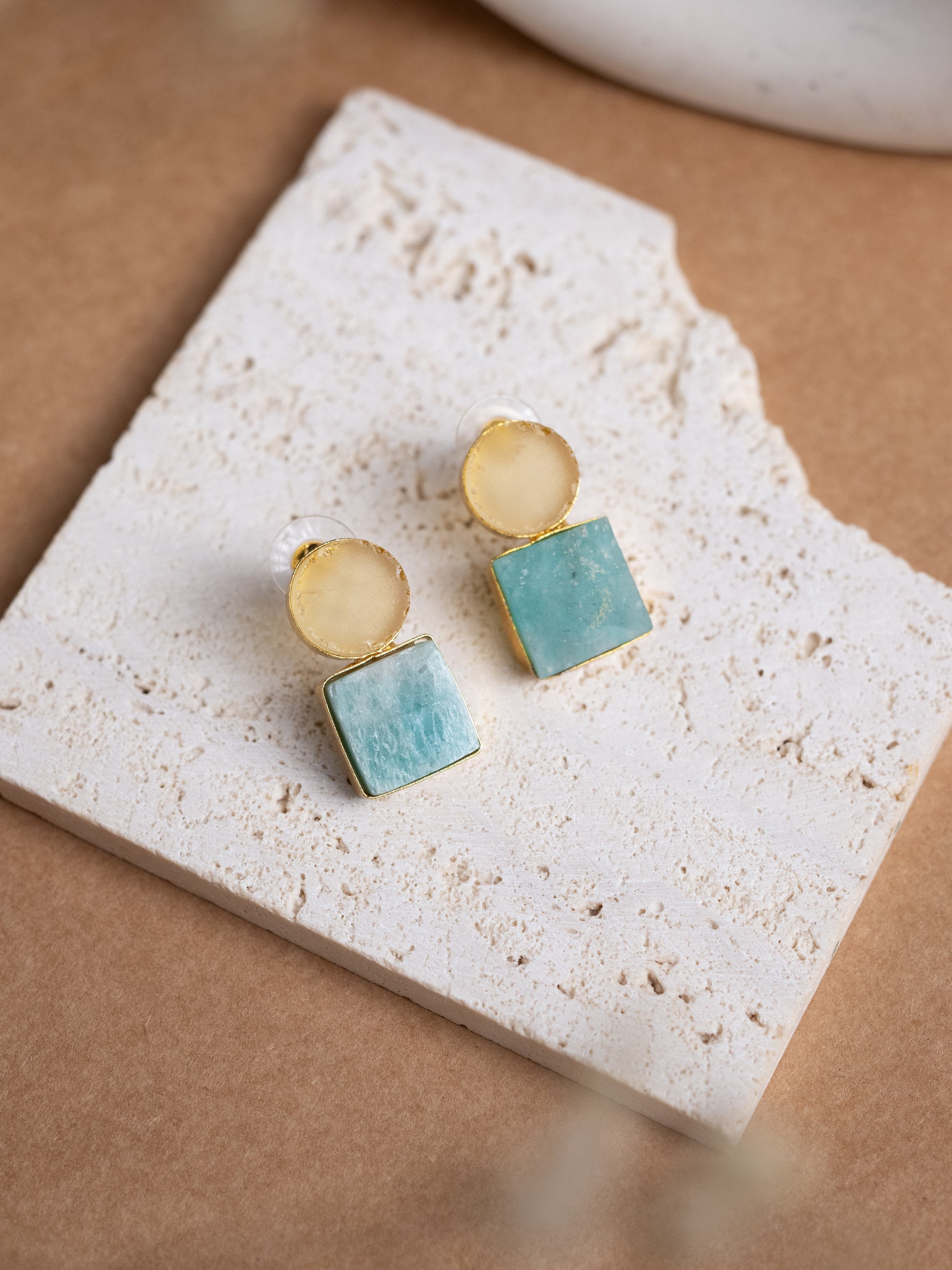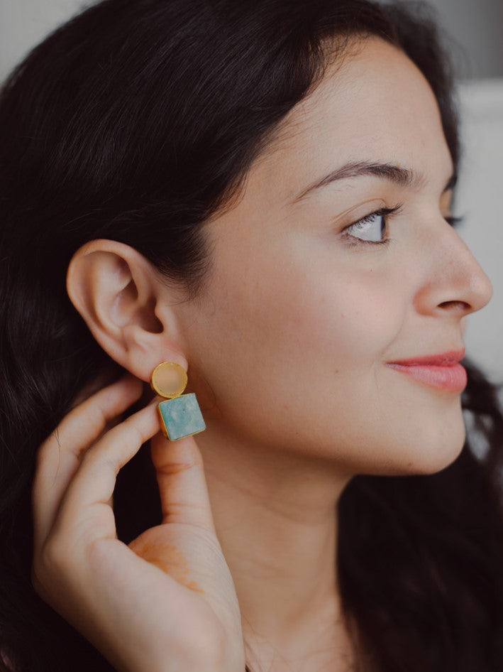 Lemon Quartz circle Two Stone Crystal Earring (Lemon Quartz + Green Amazonite)