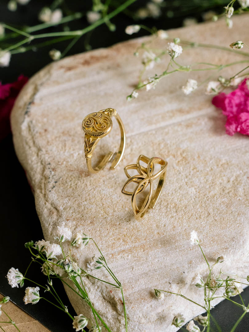 Lotus Whisper 2 rings Combo Brass Adjustable Ring (Anti Tarnish)