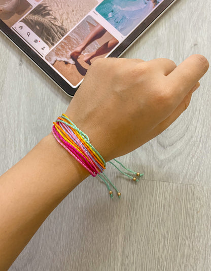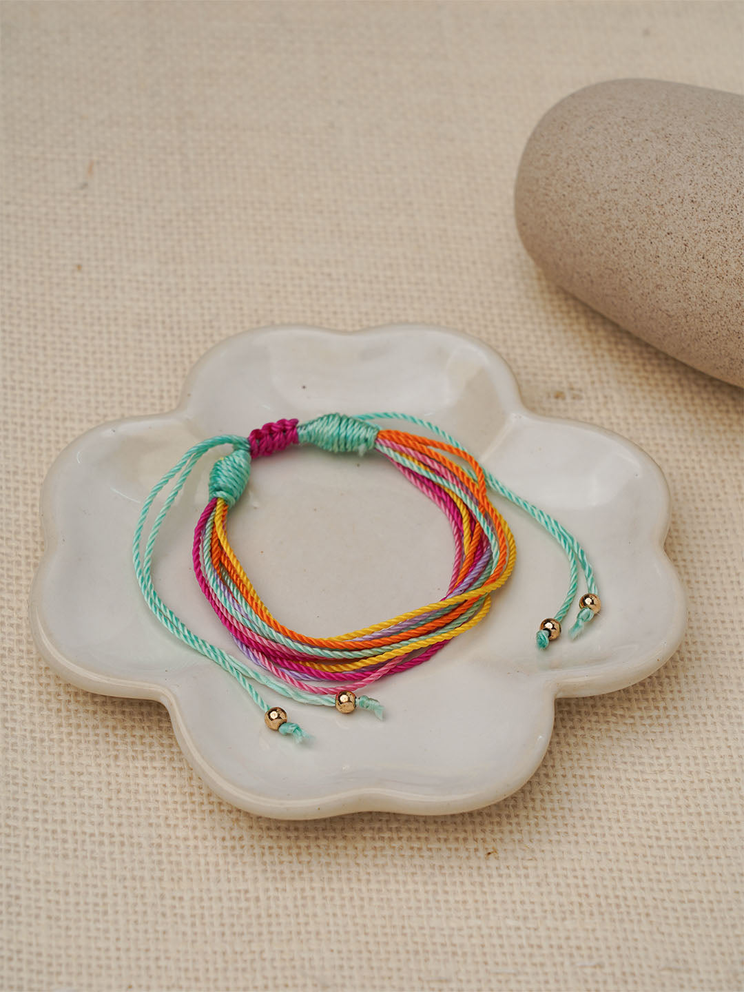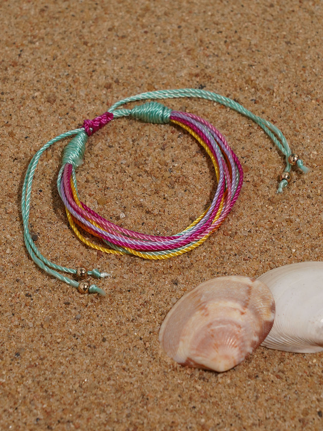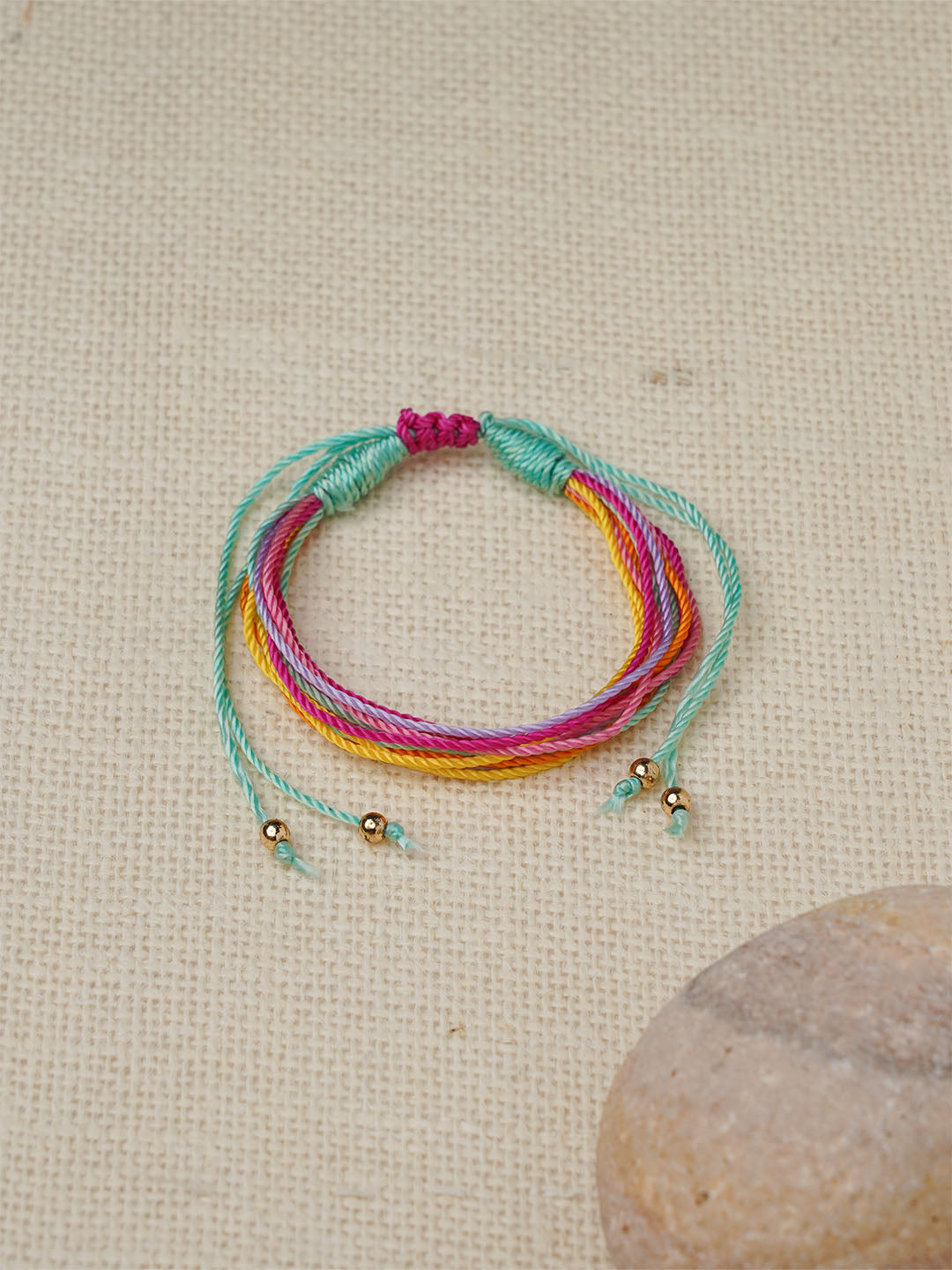 Make a fashion statement with this stylish multi-thread bracelet. It features a unique design featuring multiple colors in one piece. Show off your personal style and stand out from the crowd with this trendy bracelet.