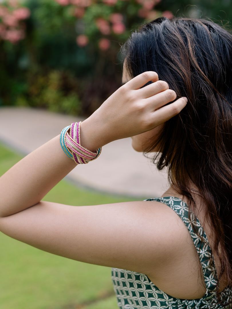 Experience the unique, versatile style of our Multicolor Entwine Beaded Adjustable Bracelet. Each bracelet showcases a stunning entwined design adorned with vibrant beads, sure to make a statement. With its adjustable fit, it's perfect for any occasion. Add a touch of color and trendiness to your wardrobe with this must-have accessory.