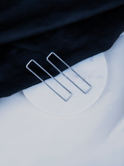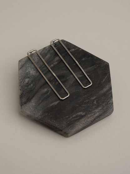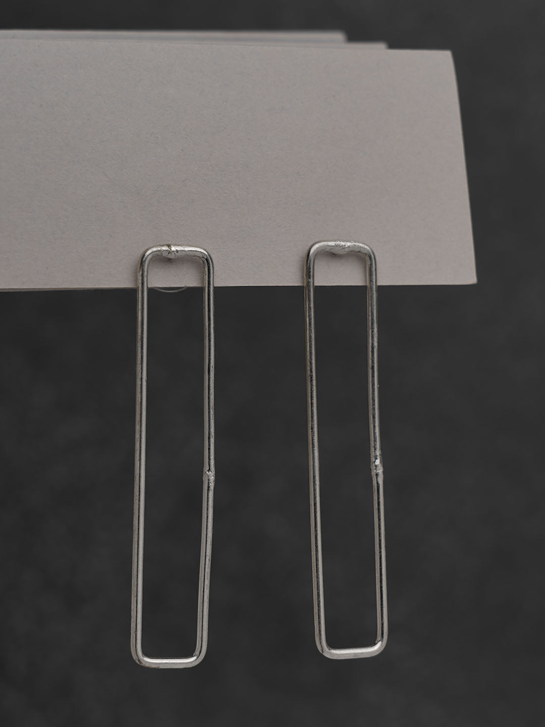 Silver Toned Long Rectangle Earring. Expertly crafted with silver-toned metal, these long rectangle earrings are a versatile and stylish addition to any jewelry collection. Their sleek and modern design is perfect for any occasion, whether you're dressing up for a formal event or looking to add a touch of elegance to your everyday look. With their high-quality materials and timeless design, these earrings are sure to become a staple in your wardrobe.