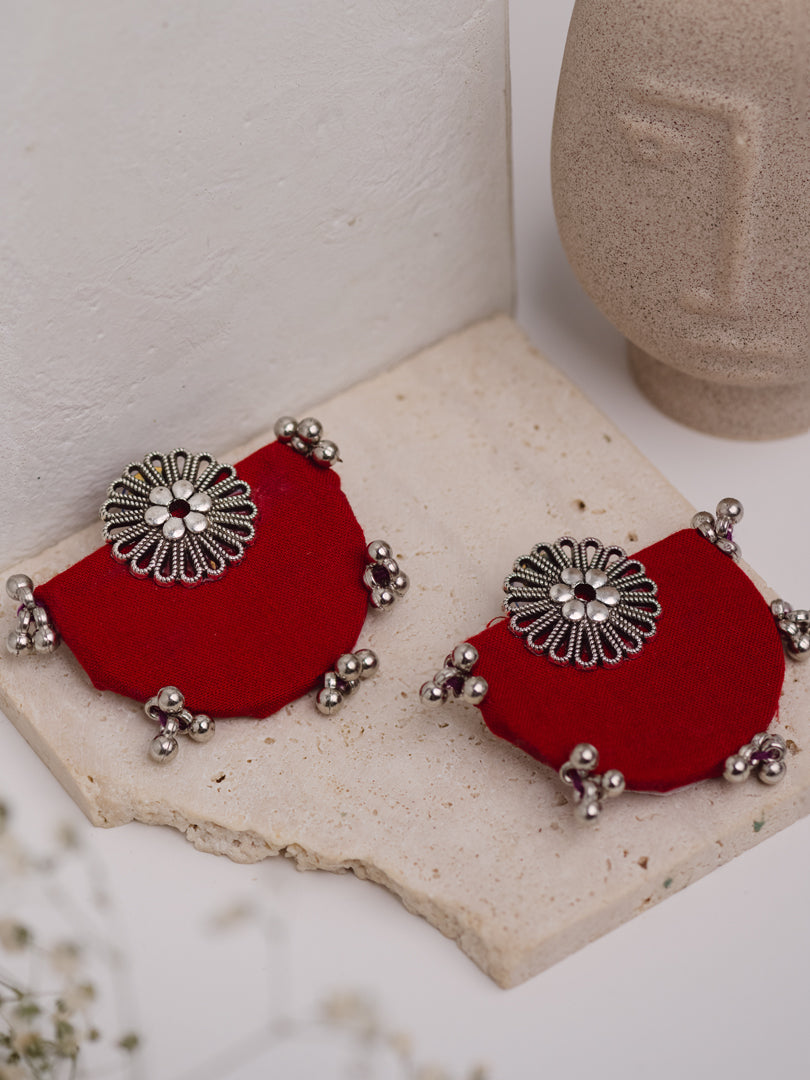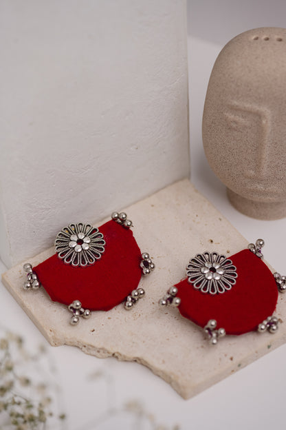 These elegant Red Flower Fabric Earrings are a must-have for any fashion-forward individual. Made with high-quality fabric, these earrings are lightweight and will add a pop of color to any outfit. Perfect for any occasion, these earrings are sure to make a statement and elevate your style.