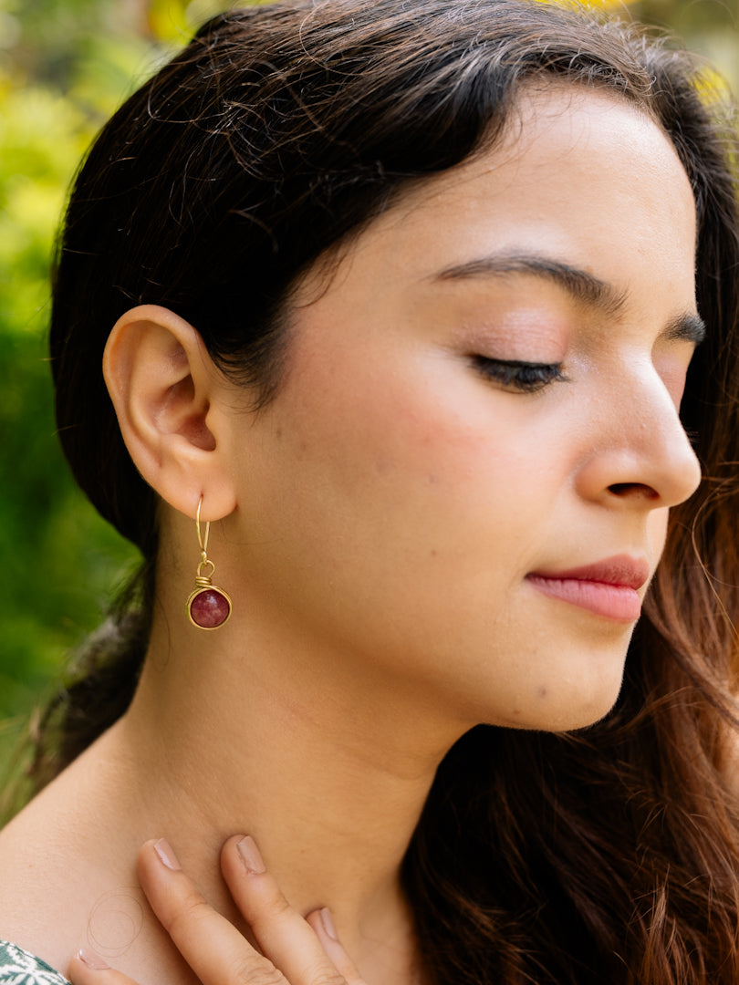 Red Globe Brass Stone Earring (Anti Tarnish)