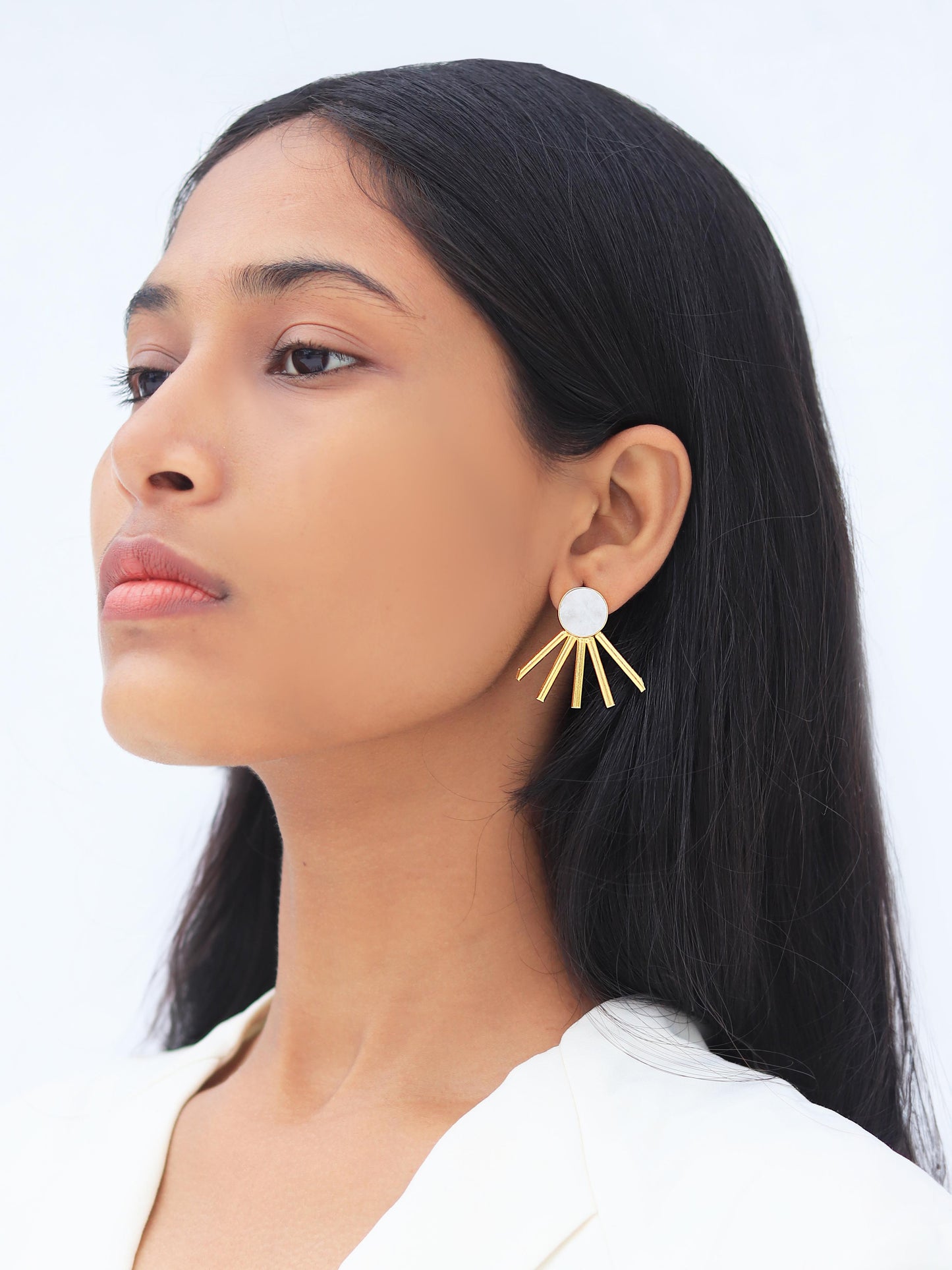 Glam up with these Five Line Crystal Statement Earrings. Bedazzle your audience and sparkle with every move. These earrings will elevate any outfit and are sure to become your new favorite go-to accessory. Shine bright like a crystal and make a statement!