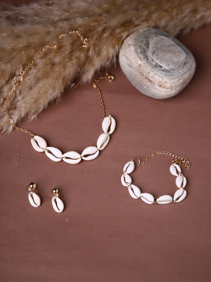 A must have collection in your travel bag. Grab our shell collection consisting of choker, earring and bracelet at the best price. This stylish set is an ideal accessory for any adventure. Crafted from strong and durable materials, our Shell Collection ensures quality, comfort, and beauty.