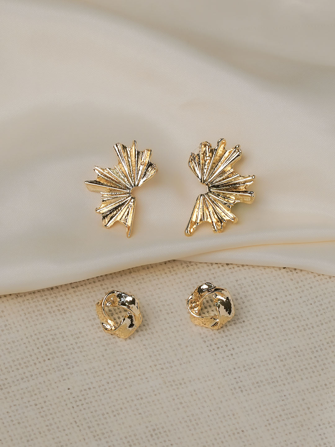 Statement Duo earring ( Demi thunder + Gold Stud)