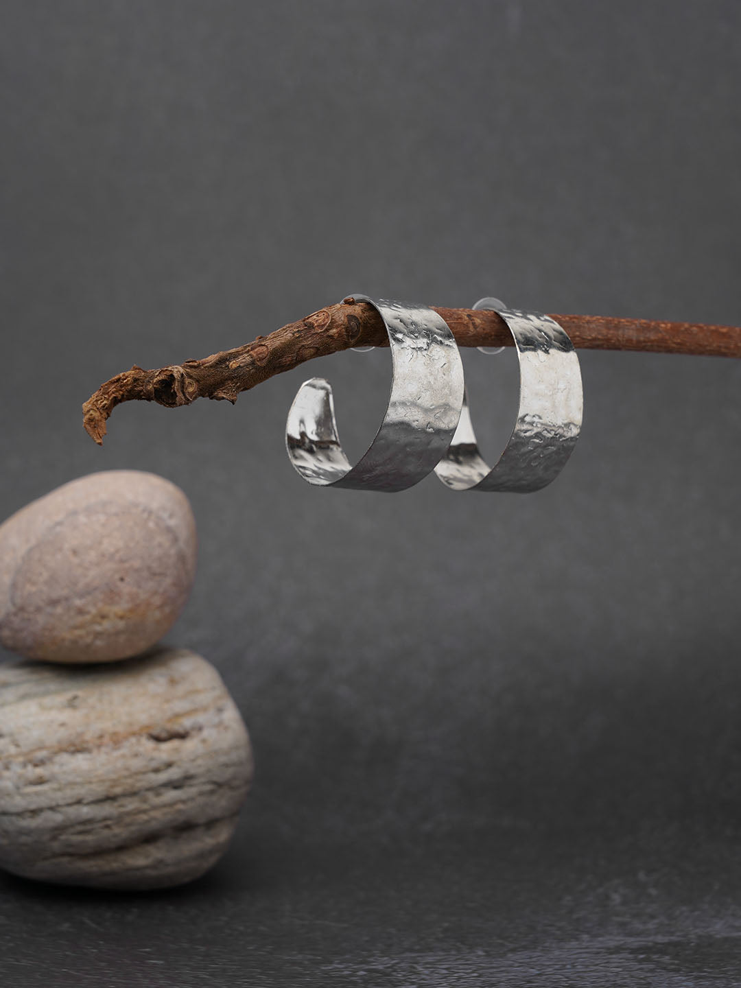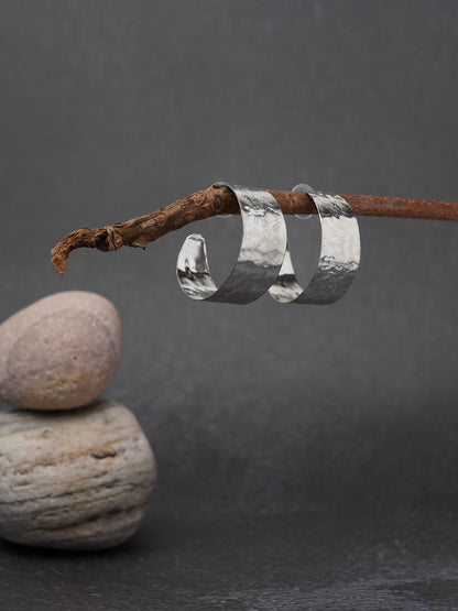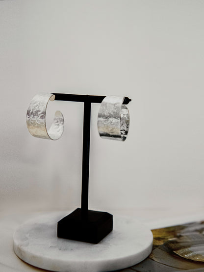 Textured Big Silver Brass hoop