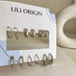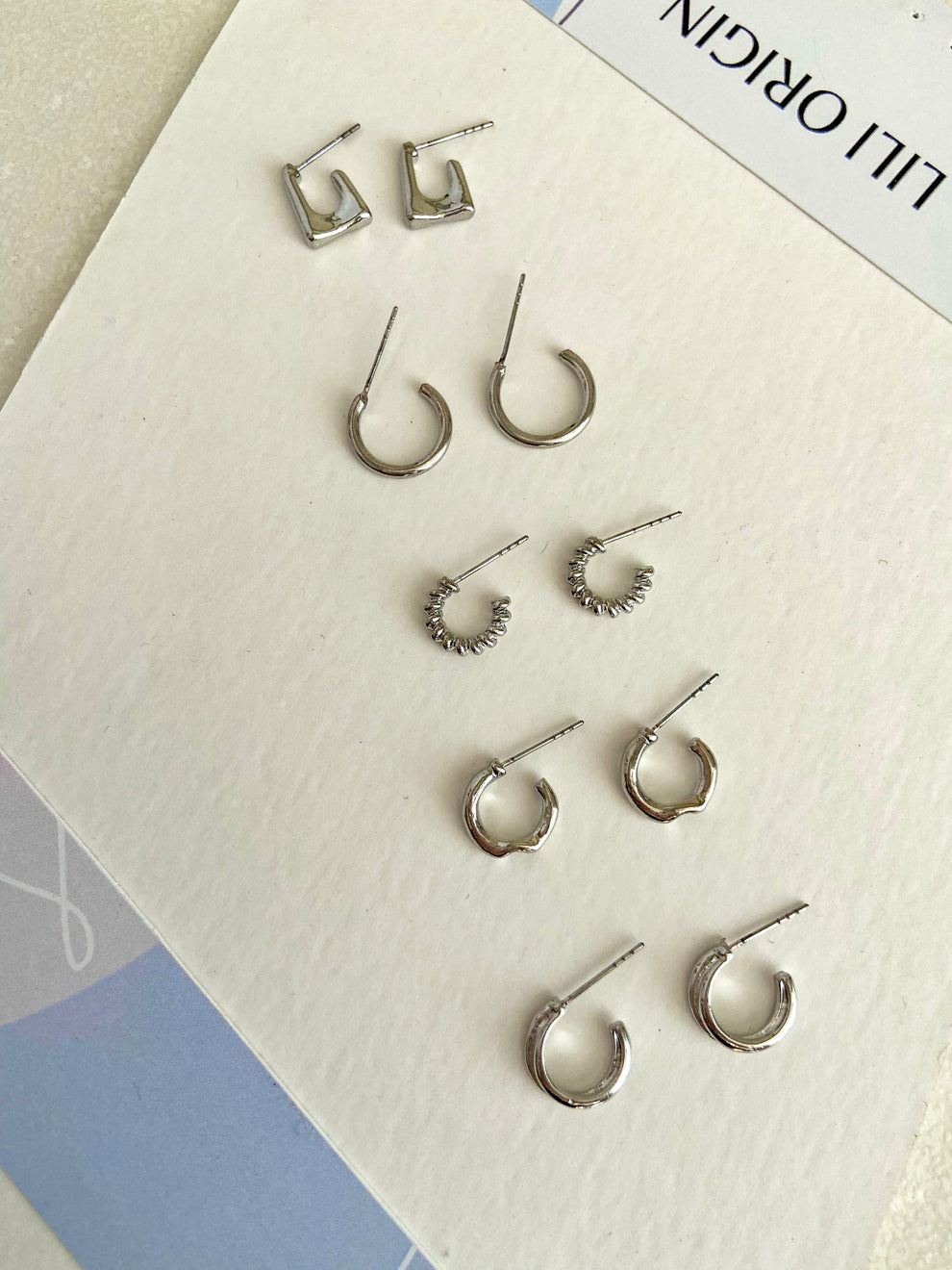 7 Pair Geometric Earring Silver: Explore the geometric allure with this set of seven pairs of silver earrings, each presenting a unique and eye-catching design for a trendy and modern appeal.
