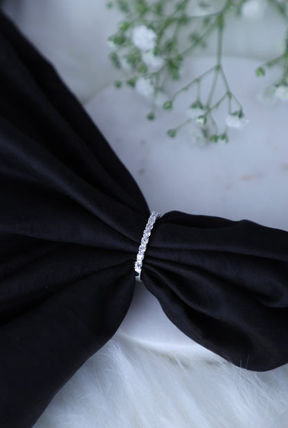 This sleek White Line Ring is crafted from 925 sterling silver, with zircon stones encrusted for added luxury. The perfect accessory for a modern and sophisticated look. Please expect slight difference in finishing as these are hand crafted in sterling silver.