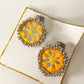 This beautiful Yellow handmade Fabric Earring is crafted with Mirrors and oxidized silver. It features a unique design and has been carefully handmade with fabric for maximum comfort and durability. Perfect for a special occasion, this jewelry is sure to make a statement.